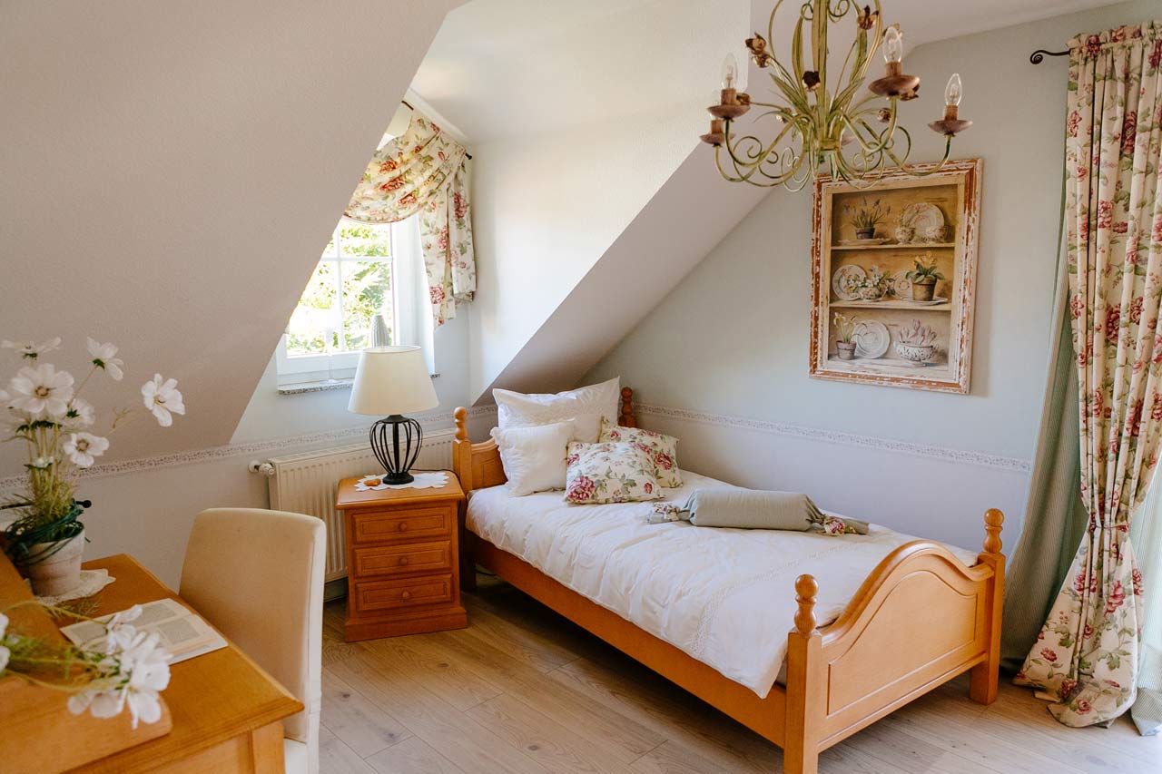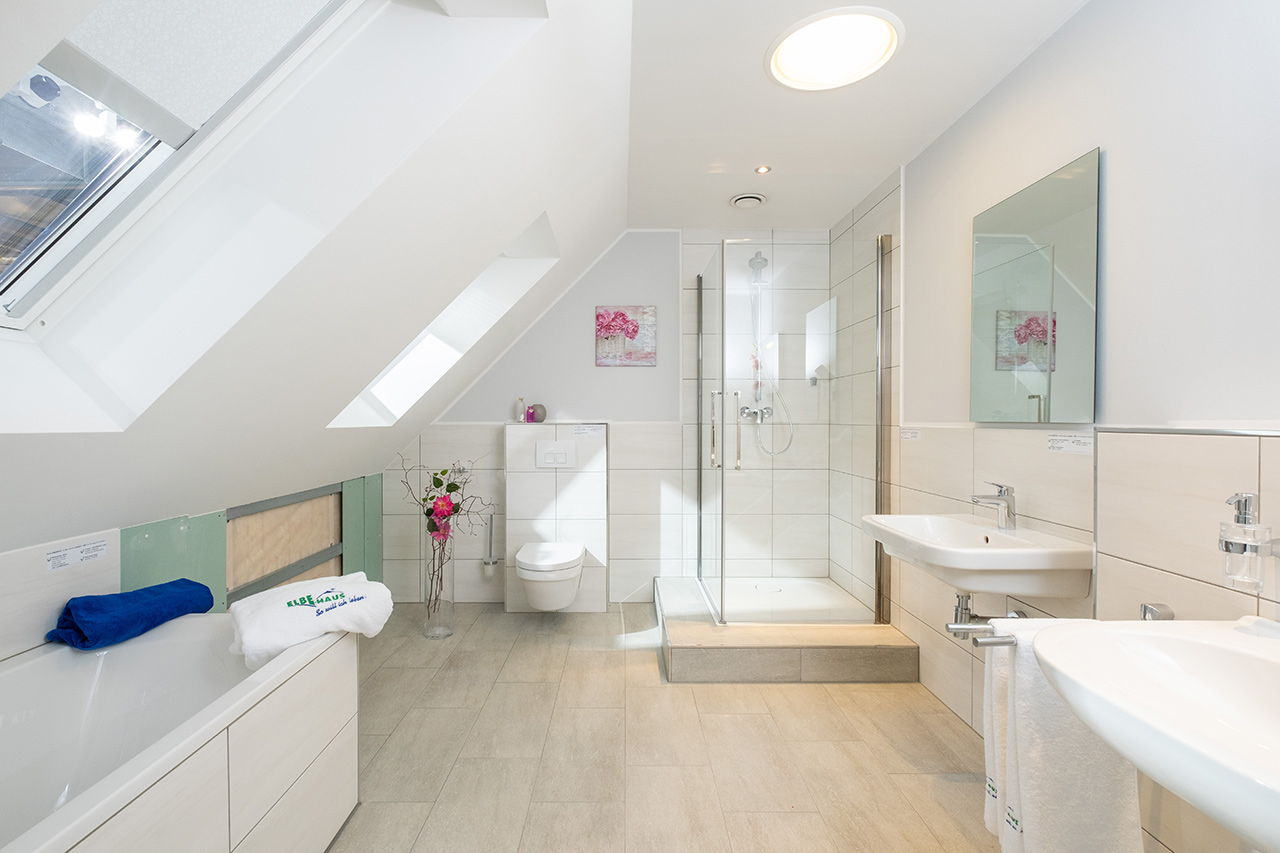 Der großzügige Stil des Hauses setzt sich im Dachgeschoß mit der offenen Galerie fort. Vier Schlafzimmer, ein Bad mit spanischen Hochglanzfliesen, eine imposante Deckenkonstruktion und zwei Balkone bieten auch einer größeren Familie viel Platz. Im Keller des Hauses mit insgesamt 150 m2 finden Sie Büro-, Bemusterungs- und Besprechungsräume.