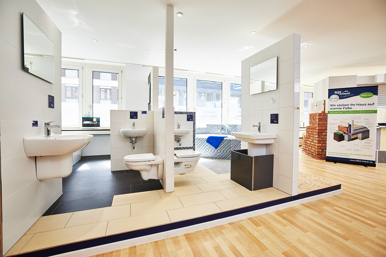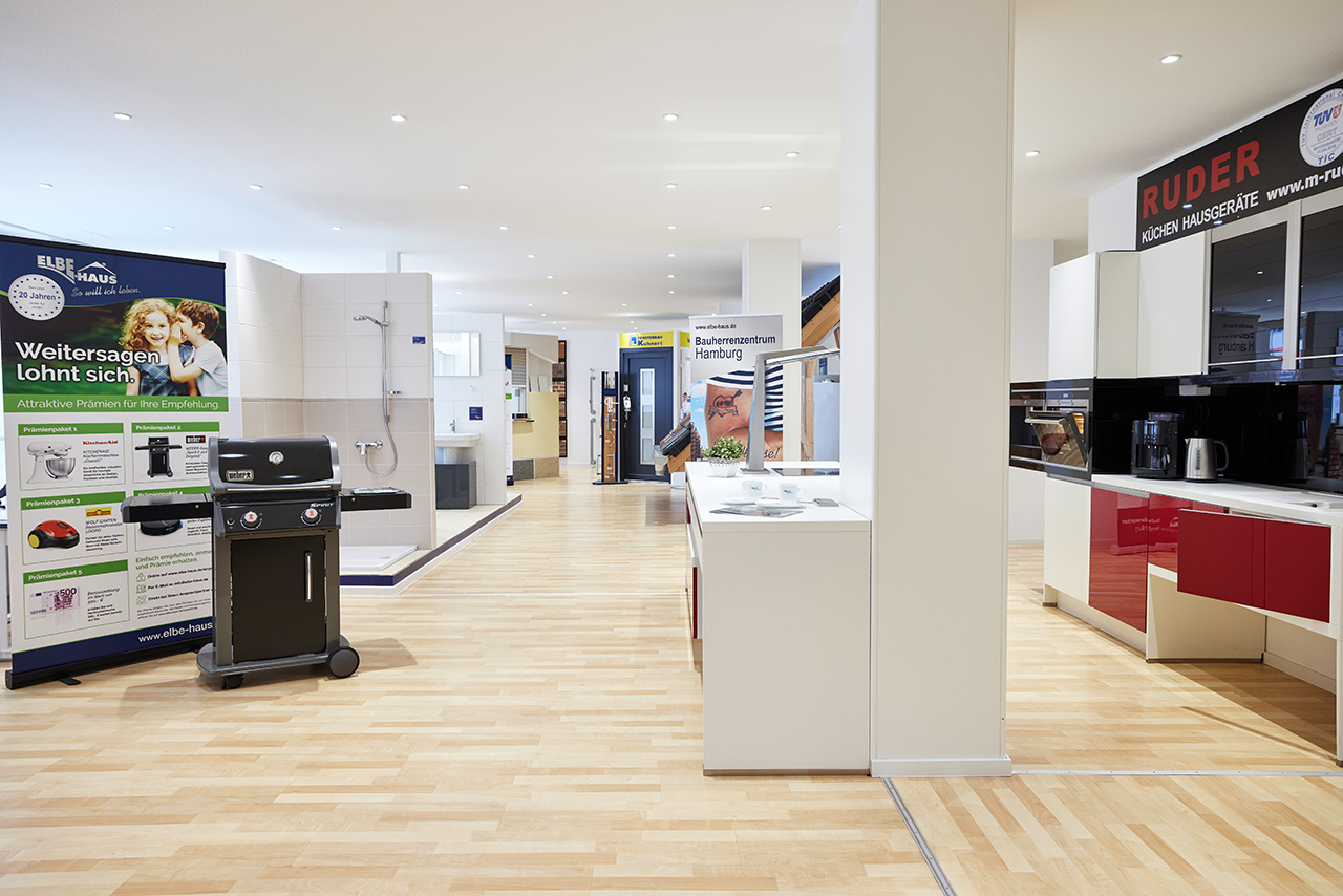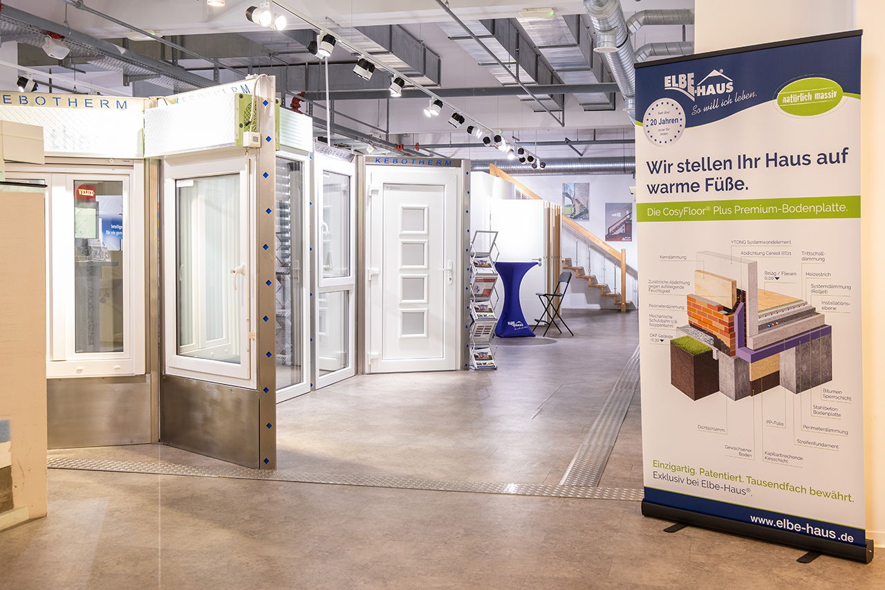 In der Sachsenstraße 5 in Hamburg können sich Bauherren und Bauinteressenten auf mehr als 250 m2 einen rundum überzeugenden Eindruck verschaffen über die Qualität und die Ausstattungsmöglichkeiten von Elbe-Häusern. Wir präsentieren Ihnen die neuesten Konzepte und Geräte im Bereich der Haustechnik, zeigen eine umfangreiche Auswahl an Haustüren, Innentüren und Dachbaustoffen, sowie eine vielfältige Sanitärausstellung, die bei unseren Bauherren keine Wünsche offen lässt.