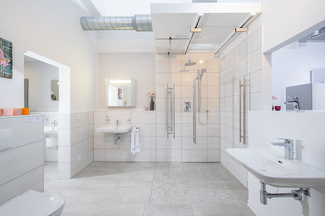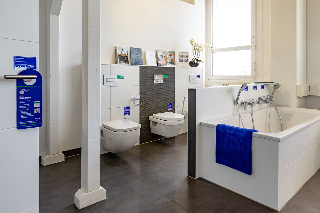 In unseren Räumen finden Sie eine große Auswahl an Außen- und Innentüren, Fenstern, Dachziegeln, Klinkern sowie verschiedene Musterbäder und die neueste Heizungstechnik. Unser Team berät Sie gern bei der Auswahl und unterstützt kompetent bei Entscheidungen.