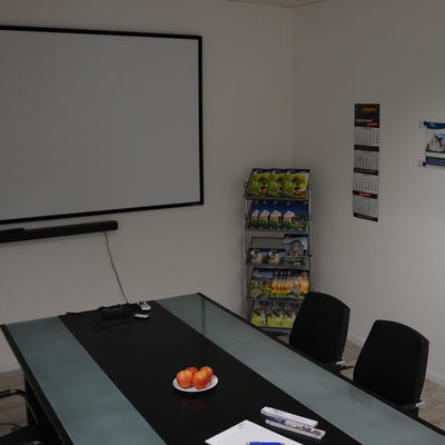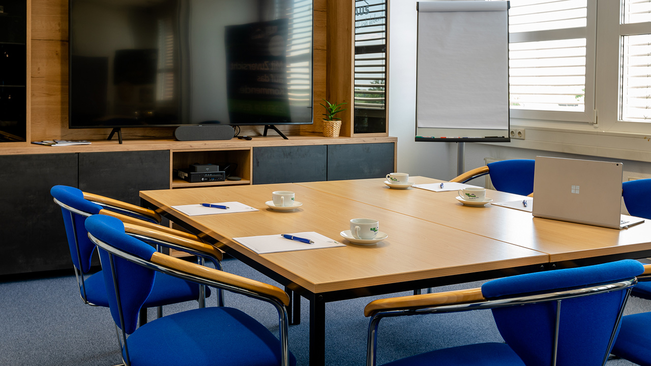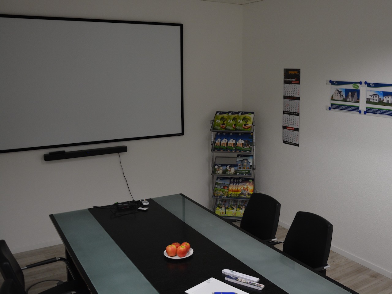 • Präsentation an 65 Zoll Fernseher, großer Besprechungstisch