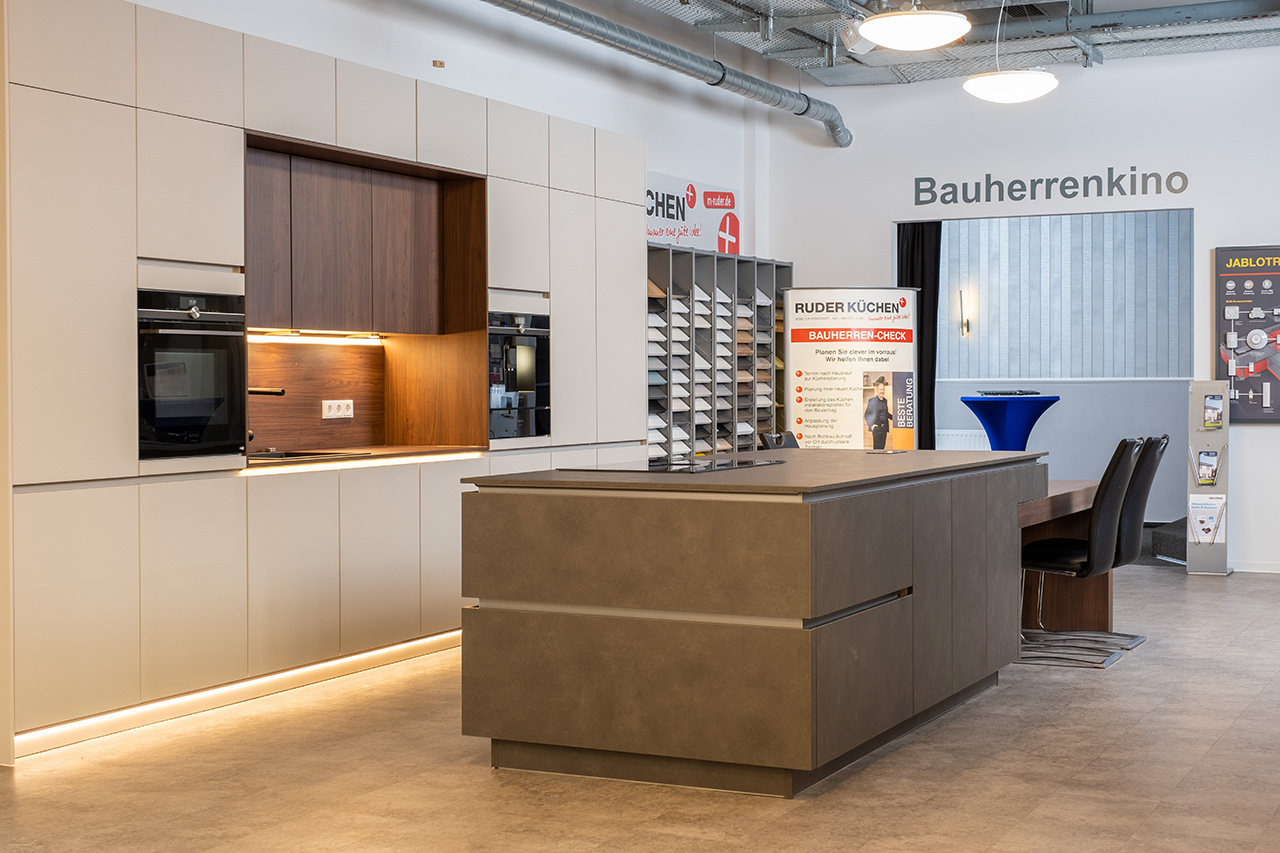 Neben zwei Büroräumen, einer großen Show-Küche der Firma RUDER Küchen und einem Besprechungsraum mit moderner Beamerausstattung, bietet vor allem auch die umfangreiche Ausstellung unserer Industriepartner einen großen Mehrwert für Sie. Hier können Sie bereits vor der Bauphase, Produkte anfassen, Farben und Formen auswählen und Ihrem Traumhaus gedanklich ein Stückchen näher sein. Ein besonderes Highlight am Standort in Dresden ist die virtuelle Präsentation ihres zukünftigen Zuhauses über eine VR-Brille. Sind Sie neugierig geworden?