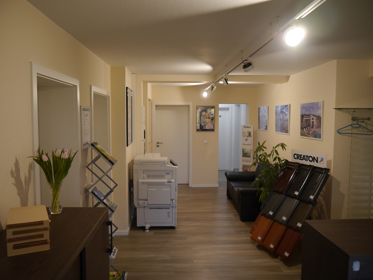 Wir haben auf ca. 100 m² 4 Räume inkl. Bemusterungsaustellung, mit 4 Kundenparkplätzen, einen ebenerdigen Zugang und für die Kleinen eine Spielecke. Das Büro ist zentrumsnah gelegen und mit öffentlichen Verkehrsmittel gut zu erreichen (Bus Linie 10 + 11 und Straßenbahn Linie 2+4).