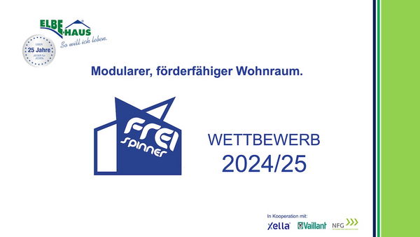 Auch in diesem Jahr wollen wir wieder kreative Idee von Nachwuchstalenten und Berufsprofis fördern und auszeichnen. In unserem deutschlandweiten Ideen-Wettbewerb "Freispinner", den wir gemeinsam mit unseren Geschäftspartnern XELLA, Vaillant und der NFG ausloben, freuen wir uns auf zahlreiche Einsendungen rund um das Thema "Modularer, förderfähiger Wohnraum". Erfahren Sie alle Details in den Ausschreibungsunterlagen.
