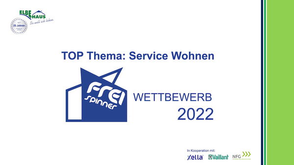 Auch in diesem Jahr wollen wir kreative Idee von Nachwuchstalenten und Berufsprofis fördern und auszeichnen. In unserem deutschlandweiten Freispinner-Wettbewerb, den wir gemeinsam mit unseren Geschäftspartnern (XELLA, Vaillant und der NFG), freuen wir uns um Einsendungen rund um das Thema Service Wohnen. Erfahren Sie alle Details in den Ausschreibungsunterlagen.