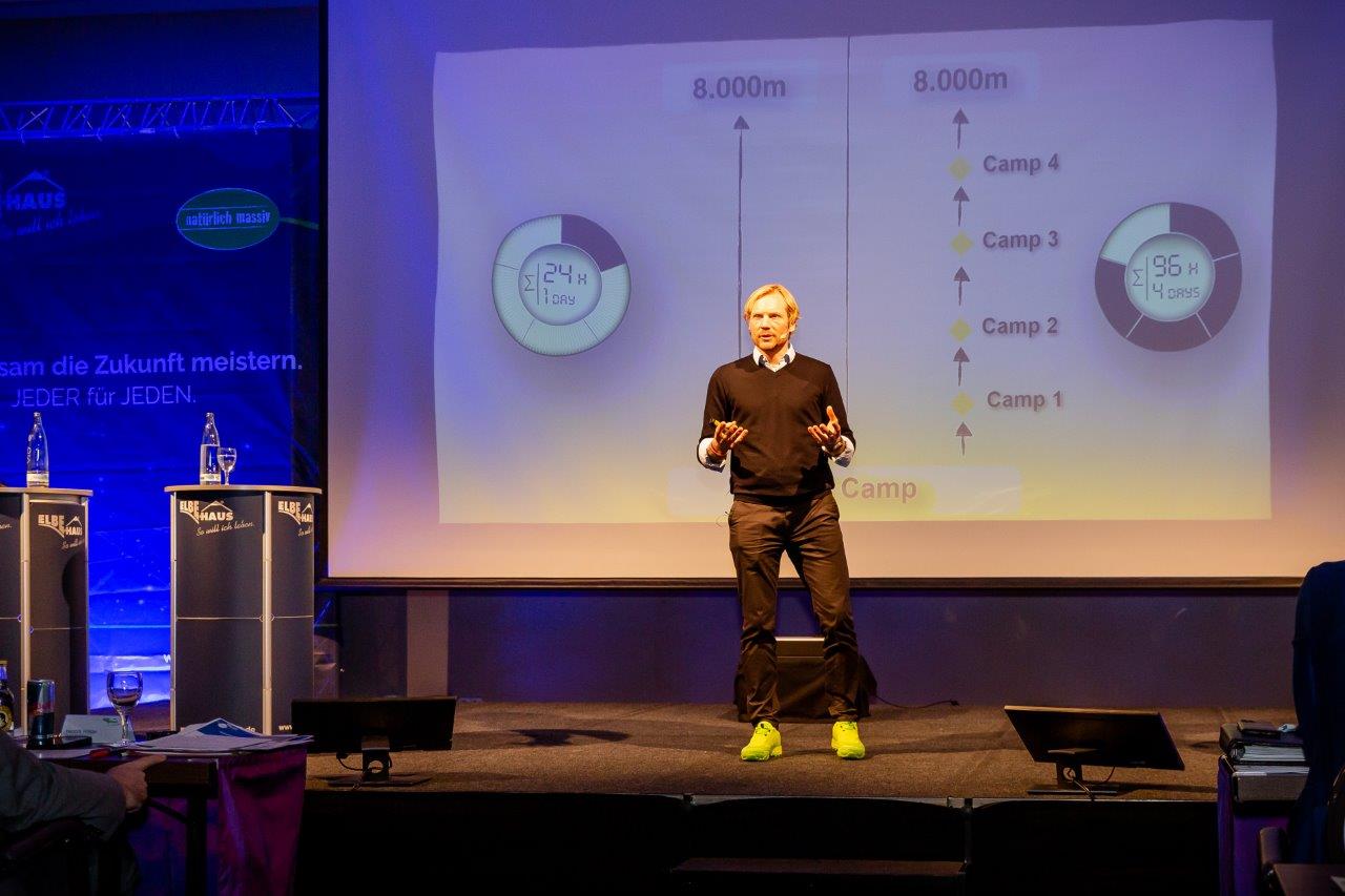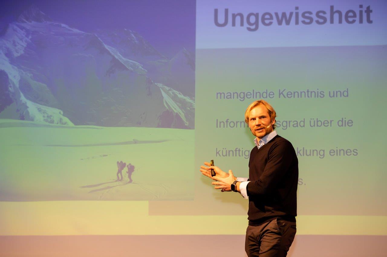 Am Nachmittag fesselte Benedikt Böhm, CEO von Dynafit, Extremsportler und WWF-Botschafter, die Teilnehmer mit seinem Vortrag, wie er und wir alle sportliche und unternehmerische Herausforderungen so analysieren und auch die dazugehörigen Angstkarten visualisieren können, um optimalen Entscheidungen treffen zu können. Gemeinsam mit Bendikt Böhm setzen wir auch wieder ein Zeichen im Sinne der Nachhaltigkeit. Mit den 130 grünen Helping-Bändern des WWF unterstützen wir Projekte zum Schutz von Wäldern auf der ganzen Welt. Egal, ob in der Welt des Sports, in der Wirtschaft oder im Privatleben. Eines vereint uns. Gemeinsam werden wir die Zukunft meistern.
