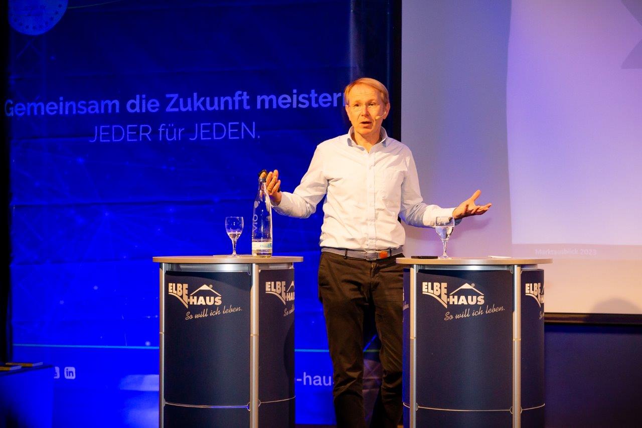 Neben der Auswertung der Kennzahlen aus dem Jahr 2022 und der traditionellen Würdigung langjähriger Weggefährten und Auszeichnung der Besten der Besten, animierten zwei spannende Vorträge externen Referenten zum Nachdenken. Am Vormittag entführte Martin Langen, Dipl.-Betriebswirt Martin Langen Geschäftsführer B+L Marktdaten GmbH und Dozent für Marktforschung, die Anwesenden in die Welt der Zahlen und Trends. Ja, die Welt hat sich verändert, aber in der Veränderung liegt auch eine Chance, wenn wir die Zahlen richtig interpretieren und entsprechende Wohnkonzepte anbieten.