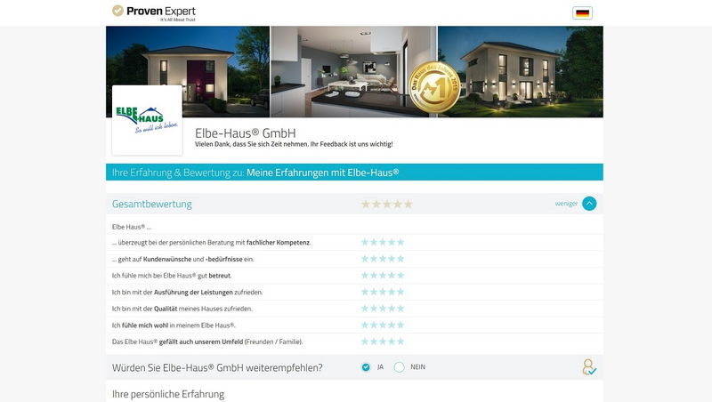 Transparenz ist uns wichtig. Das gilt nicht nur für unsere Verträge. Im unteren Bereich der Website finden Sie eine Verlinkung zum unabhängigen Bewertungsportal von ProvenExpert. Gerne können Sie hier persönliche Erfahrungsberichte und Feedbacks von Bauinteressenten und Bauherren aus den vergangenen Jahren lesen oder uns auch gerne selber bewerten.