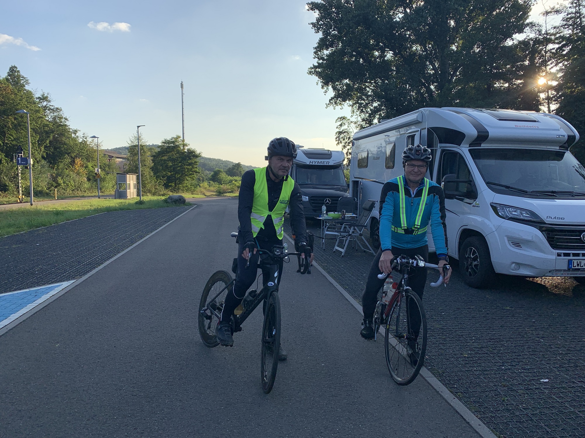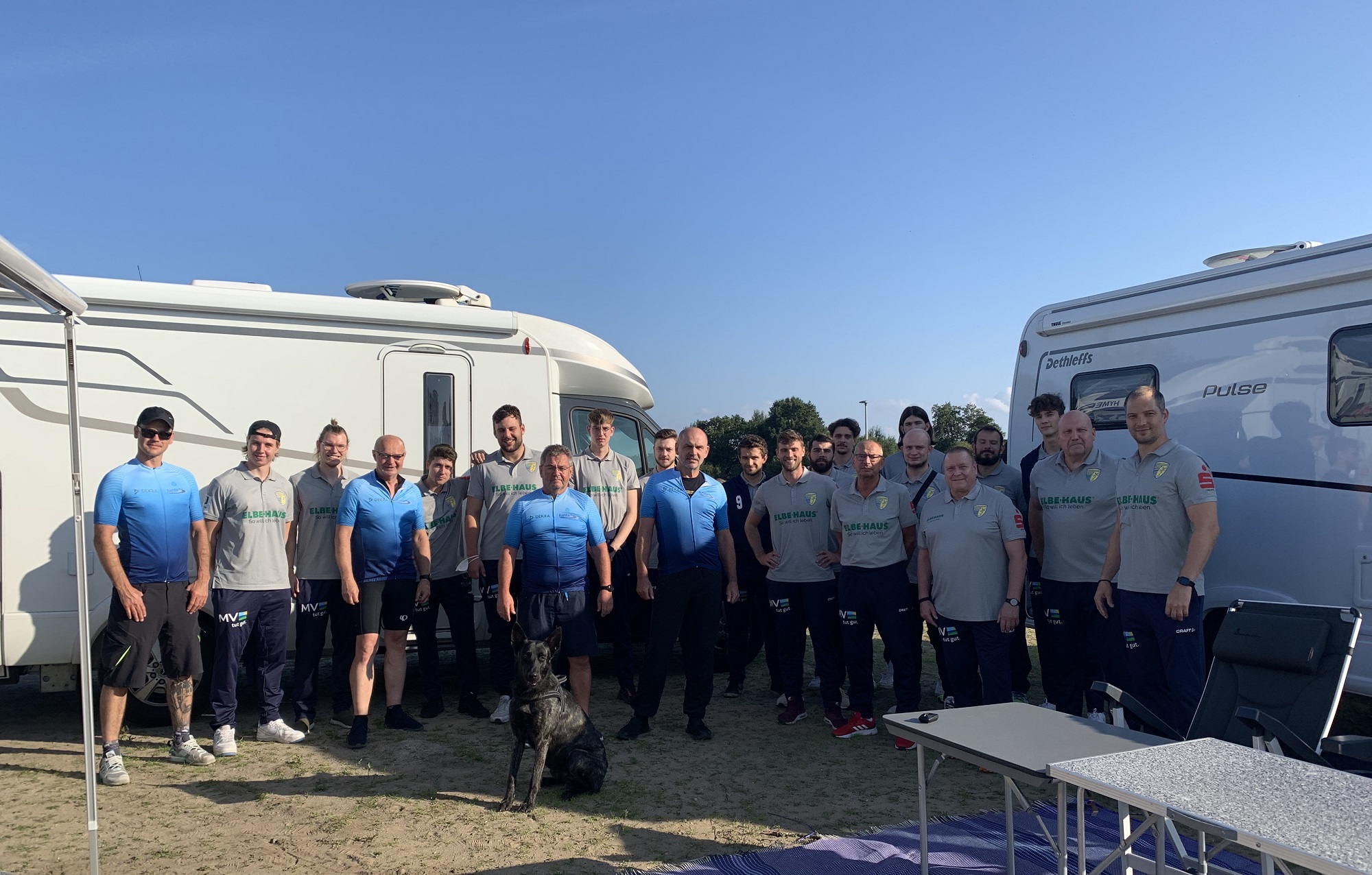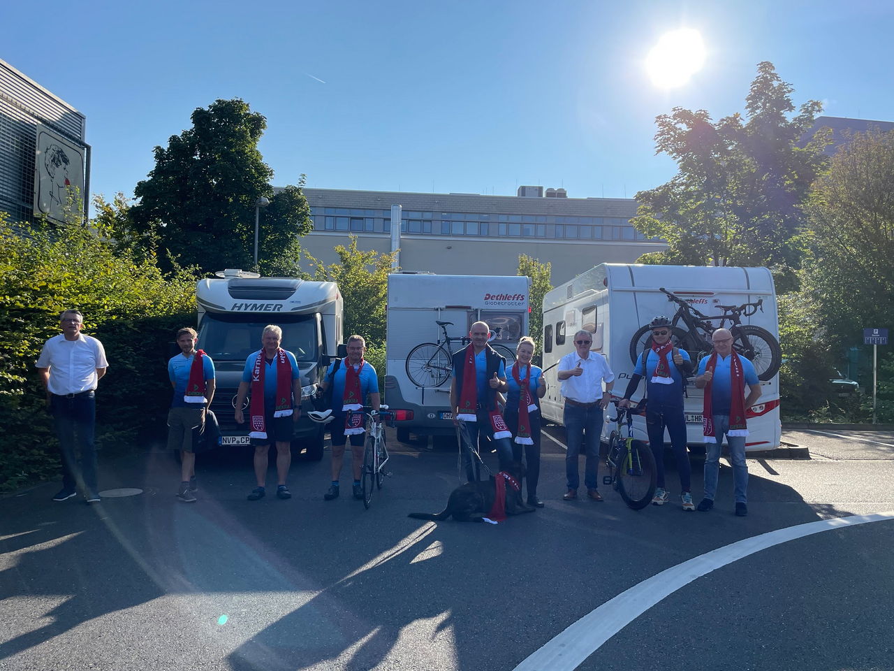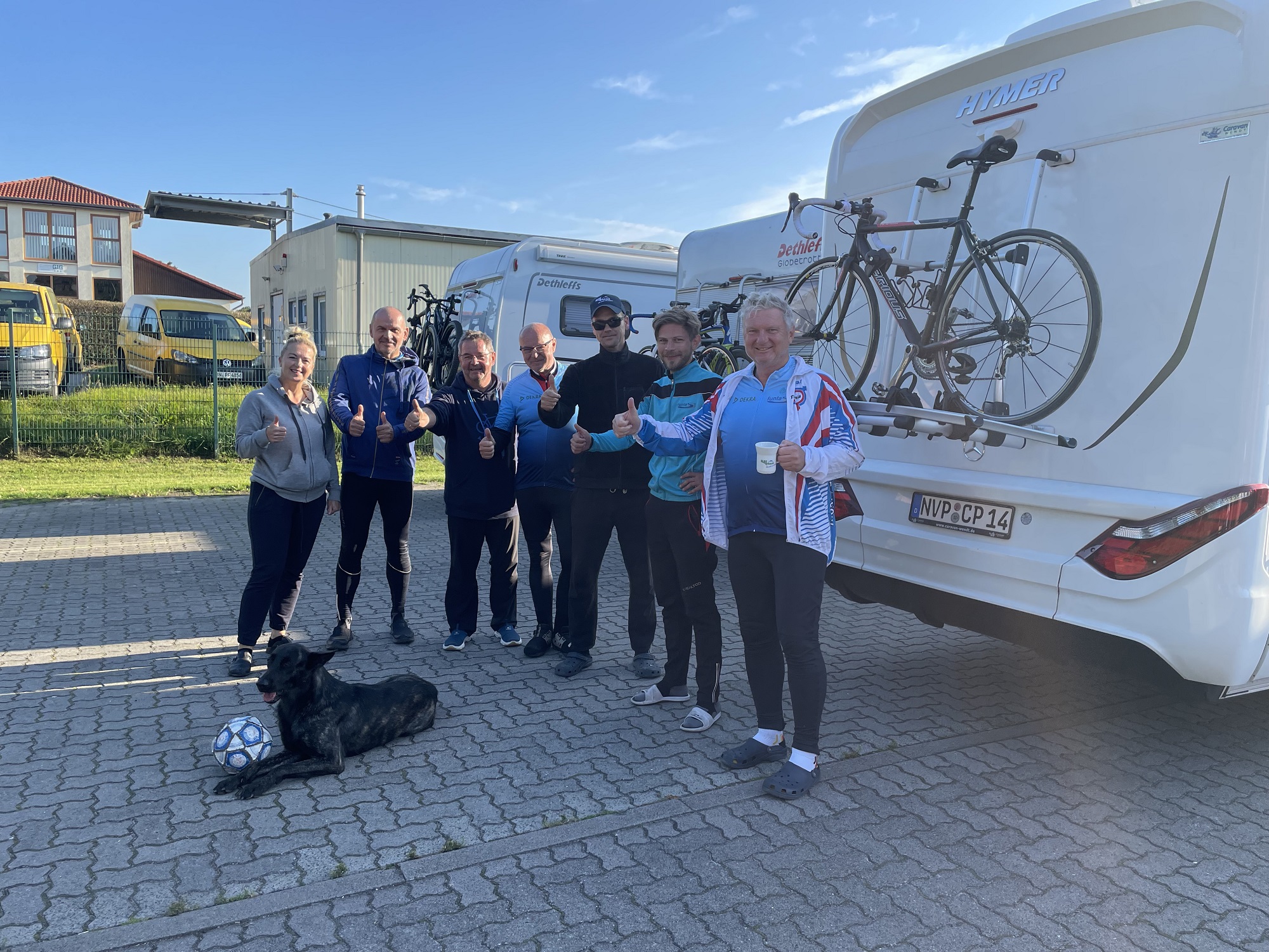 Wenn Sie unser Team mit seinen drei Begleitwohnmobilen auf der Straße sehen, dann zögern Sie nicht; winken, klatschen, zujubeln – alles ist erlaubt und freut unser Team auf der großen Tour.