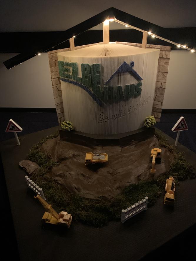 „Seit 22 Jahren begleite ich Bauherren auf dem Weg zum Eigenheim und trotzdem gibt es immer wieder Momente, die mich zu Tränen rühren. Am 19.08.2020 fand das feierliche Richtfest von Familie B./G. in Kolberg statt. Ein großer Richtkranz erhob sich über den Turm des Hauses. Voller Stolz konnte der Bauherr den letzten Nagel ins Gebälk schlagen und alle Gäste stießen auf die Gesundheit der Familie an. Anschließend wurde das mit sehr viel Mühe zubereitete Buffet eröffnet und alle konnten sich bei leckerem Grillfleisch stärken. Dann kam der Moment, der mich tief beeindruckt hat. Es kam zur feierlichen Enthüllung eines ganz persönlichen und mit sehr viel Mühe selbst gestalteten Geschenkes. Familie B./G. hat ein Haus aus einem Buch mit erhobenen Elbe-Haus® Logo über den Seiten hergestellt. Das Haus ist sogar beleuchtet. Ich möchte mich an dieser Stelle nochmals von ganzem Herzen dafür bedanken. Das Haus hat einen Ehrenplatz in meinem Büro und jeder kann es sich hier anschauen.“