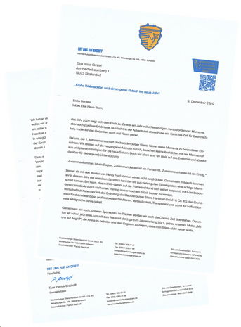 Patrick Bischoff, Geschäftsführer der Mecklenburger Stiere, hat Weihnachtspost und Geschenke in die Firmenzentrale nach Stralendorf gebracht. Eine sehr schöne Überraschung war hinter dem QR Code auf der Weihnachtspost versteckt. Schaut Euch dieses sehr nette Video an!