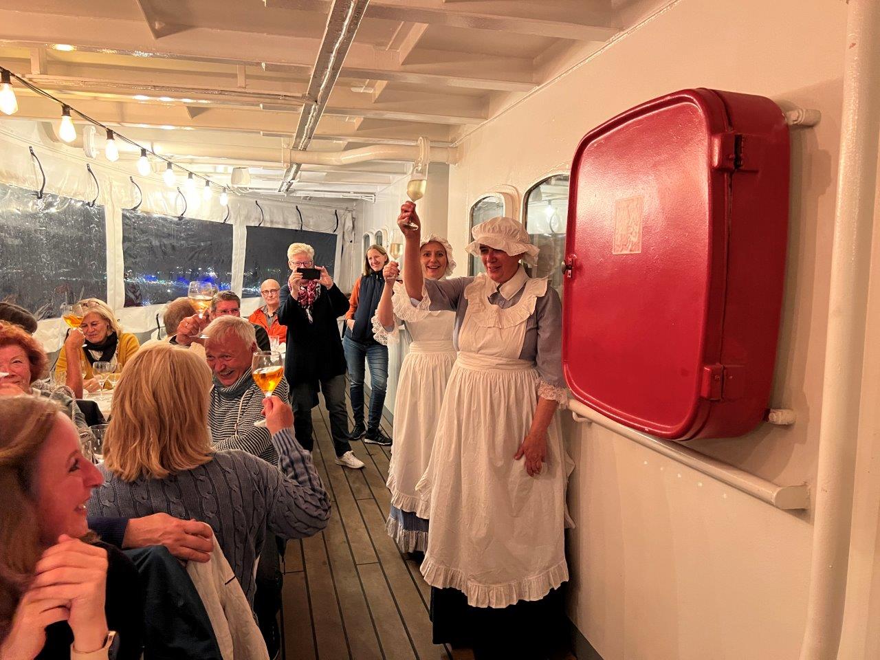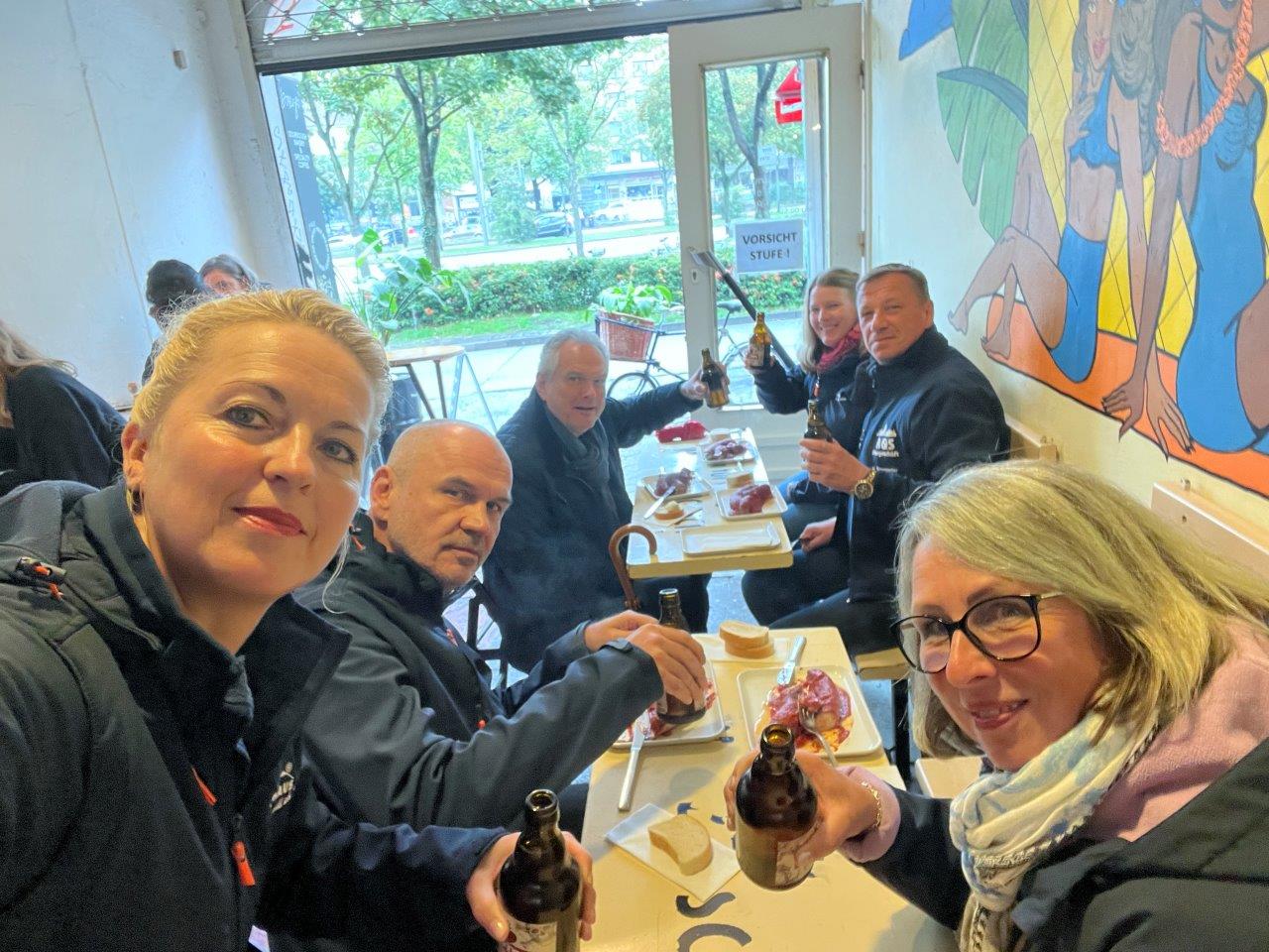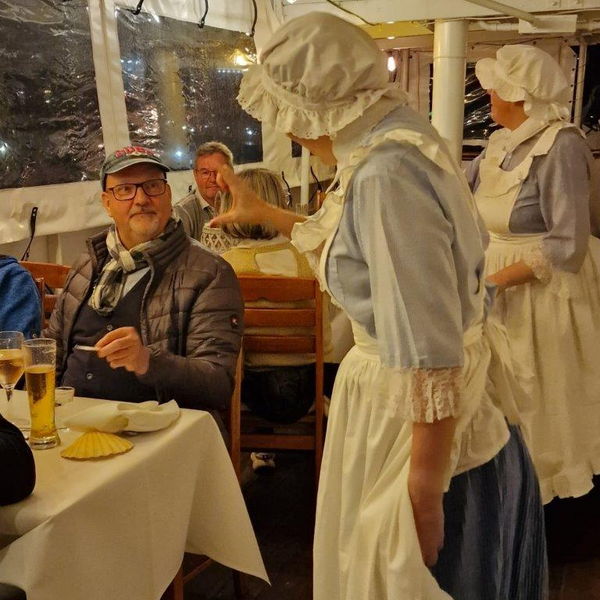 Neben Kaffee & Kuchen und einer Dampferfahrt auf dem ältesten und einzig echtem Alsterdampfer St. Georg aus dem Jahr 1876 , führte der Nachtwächter Erwin die Gruppe in St. Pauli auf die Hamburger Amüsiermeile. Mit lustigen und skurrilen Geschichten vom Hamburger Kiez ging es unter anderem auch in den weit über Landesgrenzen hinaus bekannten Boxkeller „Ritze“. Für ein nahezu deutschlandweit aktives Bauunternehmen war der außergewöhnliche Baggerkurs ein weiterer geplanter Höhepunkt an diesem Wochenende. Leider hat uns dafür das typisch hanseatische Wetter einen Strich durch die Rechnung gemacht. Zum Abendessen auf der Cap San Diego, dem größte noch fahrenden Museumsschiff, stand der gemeinsame Spaß mit Käthe und Adele wieder im Mittelpunkt.
