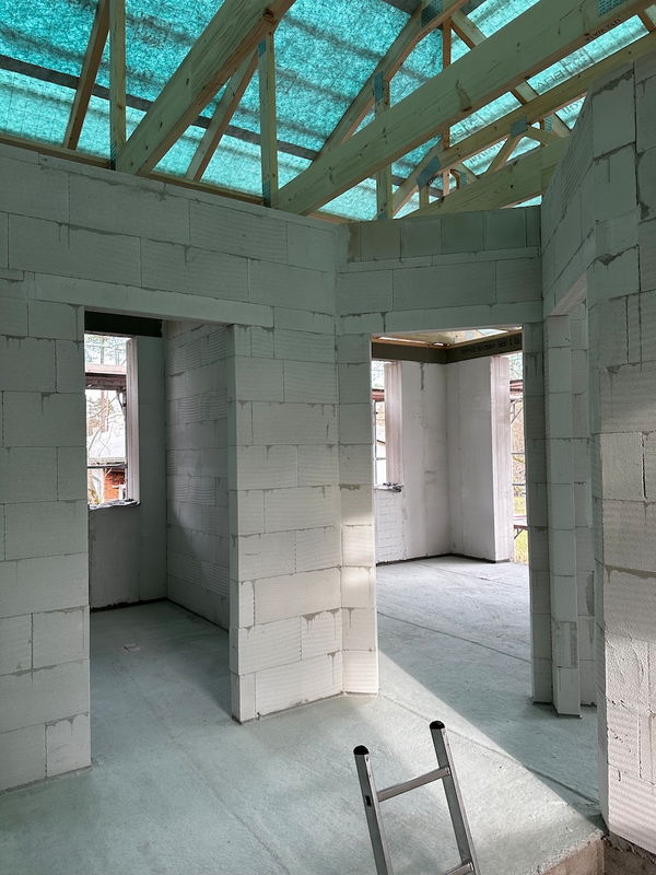 Wir hatten ebenfalls Glück mit den Materialien, in diesen Zeiten keine Selbstverständlichkeit, sodass die Bauzeit locker eingehalten und sogar noch um 1,5 Monate (7,5 Monate von Aushub Bodenplatte bis Hausübergabe) unterschritten wurde.