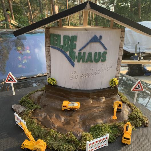 „Seit 22 Jahren begleite ich Bauherren auf dem Weg zum Eigenheim und trotzdem gibt es immer wieder Momente, die mich zu Tränen rühren. Am 19.08.2020 fand das feierliche Richtfest von Familie B./G. in Kolberg statt. Ein großer Richtkranz erhob sich über den Turm des Hauses. Voller Stolz konnte der Bauherr den letzten Nagel ins Gebälk schlagen und alle Gäste stießen auf die Gesundheit der Familie an. Anschließend wurde das mit sehr viel Mühe zubereitete Buffet eröffnet und alle konnten sich bei leckerem Grillfleisch stärken. Dann kam der Moment, der mich tief beeindruckt hat. Es kam zur feierlichen Enthüllung eines ganz persönlichen und mit sehr viel Mühe selbst gestalteten Geschenkes. Familie B./G. hat ein Haus aus einem Buch mit erhobenen Elbe-Haus® Logo über den Seiten hergestellt. Das Haus ist sogar beleuchtet. Ich möchte mich an dieser Stelle nochmals von ganzem Herzen dafür bedanken. Das Haus hat einen Ehrenplatz in meinem Büro und jeder kann es sich hier anschauen.“