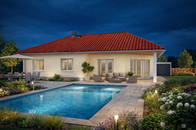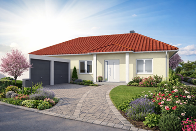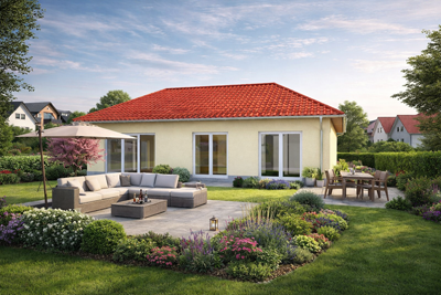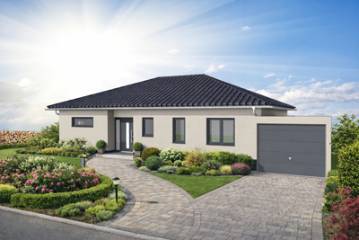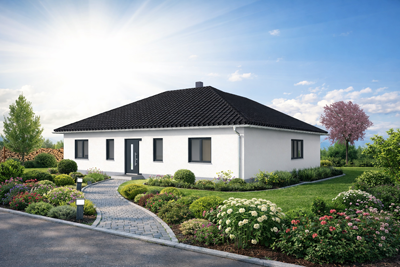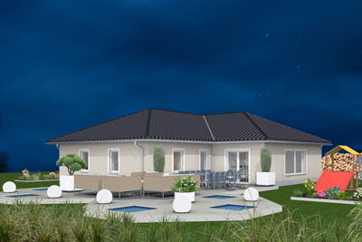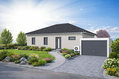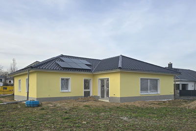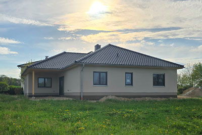 Individuell geplanter Elbe-Haus® Bungalow/ ca. 128 m2 Nutzfläche (massive Außenwand 30 cm Ytong® Porenbeton, Luft-Wasser-Wärmepumpe, zentrale kontrollierte Be- und Entlüftung mit Wärmerückgewinnung, Fußbodenheizung, Rollläden usw.)