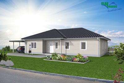 Elbe-Haus® Bungalow/ ca. 100 m2 Nutzfläche (Effizienzhaus KfW55, Luft-Wasser-Wärmepumpe, zentrale kontrollierte Be- und Entlüftung mit Wärmerückgewinnung, Fußbodenheizung, Rollläden usw.)