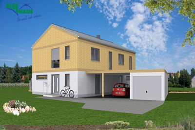 Elbe-Haus® als Doppelhaus/ jeweils ca. 121 m² Nutzfläche (massive Außenwand 30cm Ytong® Porenbeton, Luft-Wasser-Wärmepumpe, zentrale kontrollierte Be- und Entlüftung mit Wärmerückgewinnung, Fußbodenheizung, Rollläden, 1-mal Kaminzug PLEWA UniTherm Panorama mit integrierter Feuerstelle u.v.m.)