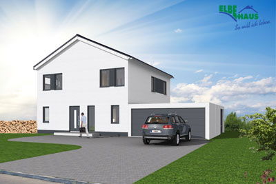 individuell geplante Elbe-Haus® Stadtvilla / ca. 146 m2 Nutzfläche (massive Außenwand 30 cm Ytong® Porenbeton, Luft-Wasser-Wärmepumpe, zentrale kontrollierte Wohnraumlüftung mit Wärmerückgewinnung, Fußbodenheizung, elektrische Rollläden usw.)
