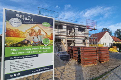 individuell geplantes, klassisches Elbe-Haus® als Klimafreundlicher Neubau – Qualitätssiegel Nachhaltiges Gebäude (QNG), ca. 120 m2 Nutzfläche (Luft-Wasser-Wärmepumpe, zentrale kontrollierte Wohnraumlüftung mit Wärmerückgewinnung, Fußbodenheizung, Rollläden usw.)