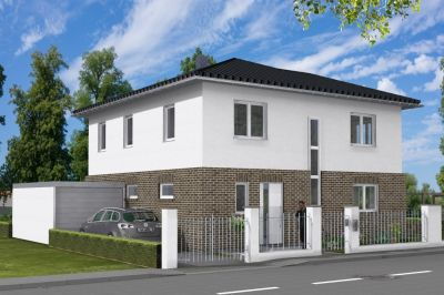 individuell geplante Elbe-Haus® Doppelhaushälfte/ ca. 273 m2 Nutzfläche (massive Außenwand 36,5cm Ytong® Porenbeton, Keller als Wohnkeller, integrierte Garage, Staffelgeschoss mit Dachterrasse, Flachdach über Staffelgeschoss als Gründach, Erdwärmepumpe mit Tiefenbohrung, zentrale kontrollierte Wohnraumlüftung mit Wärmerückgewinnung, Fußbodenheizung, elektrische Rollläden usw.)