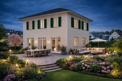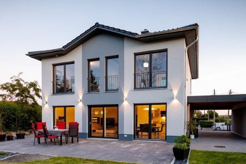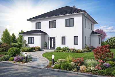 Elbe-Haus® Stadtvilla / ca. 162 m2 Nutzfläche (massive Außenwand 30 cm Ytong® Porenbeton, Luft-Wasser-Wärmepumpe, Be- und Entlüftung, Fußbodenheizung, Rollläden usw.)