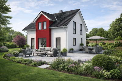 individuell geplantes, klassische Elbe-Haus® mit Zwerchgiebel, ca. 140 m2 Nutzfläche (massive Außenwand 30cm Ytong® Porenbeton, Luft-Wasser-Wärmepumpe, zentrale kontrollierte Wohnraumlüftung mit Wärmerückgewinnung, Fußbodenheizung, elektrische Rollläden usw.)