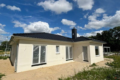 Individuell geplanter Elbe-Haus® Bungalow/ ca. 148 m2 Nutzfläche (massive Außenwand 30 cm Ytong® Porenbeton, Luft-Wasser-Wärmepumpe, zentrale kontrollierte Be- und Entlüftung mit Wärmerückgewinnung, Kaminzug, Fußbodenheizung, elektrische Rollläden usw.)