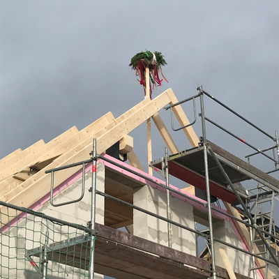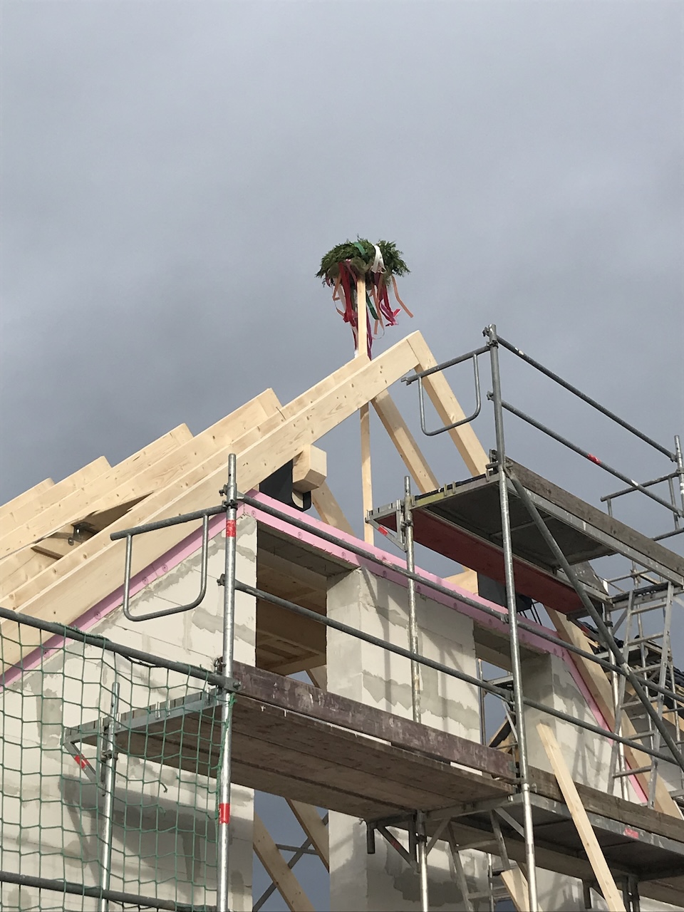 Dieses Bauvorhaben in Fakten:Modernes Einfamilienhaus in Zülpich mit ca. 151 m2 Nutzfläche und modernster Technik. Der Bagger kam zur Vorbereitung der Bodenplatte Anfang September 2024 und bereits jetzt Ende November konnten wir gemeinsam mit der glücklichen Bauherrin die Richtkrone feiern. Danke an den Bauleiter und alle Handwerker.