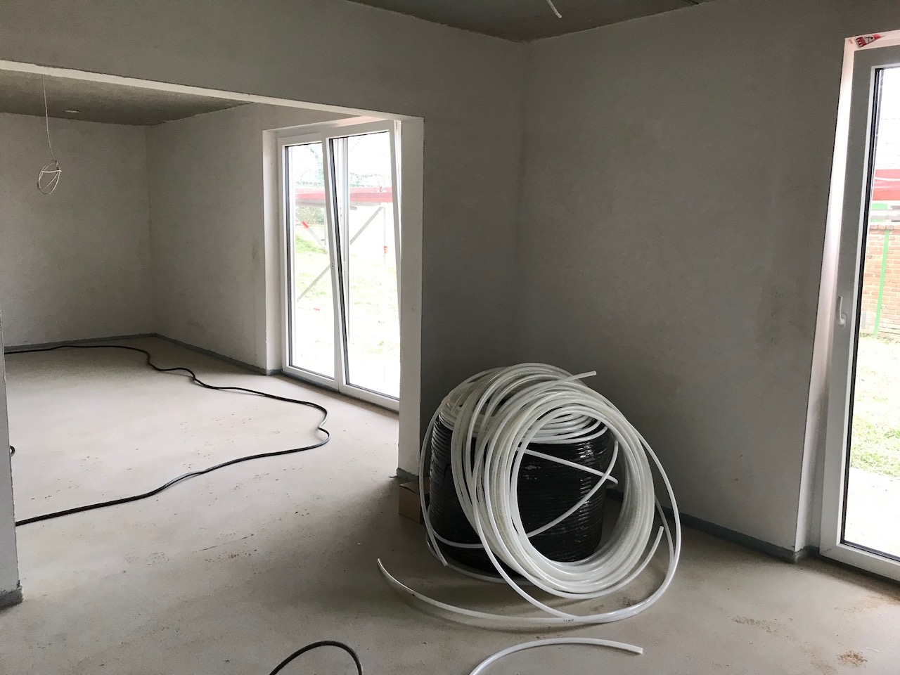 Dieses Bauvorhaben in Fakten: Satteldachhaus mit ca. 150 m2 Grundfläche, Baubeginn Mitte Sept. 22, Einzug vorr. Juni 23, Bauzeit 9 Monate Luft-Wasser-Wärmepumpe mit Kühlfunktion, Lüftungsanlage mit Wärmerückgewinnung, Fußbodenheizung in allen Räumen, Duschen im Gäste-WC und Masterbad mit Fußbodenheizung und bodengleich gefliest, elektrische Rollos Aluminium