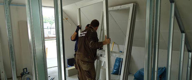 Das Obergeschoss bekommt, dank der Trockenbauer, sein Gesicht.