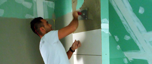 Der von Elbe-Haus® beauftragte Fliesenleger konnte nun endlich anfangen.