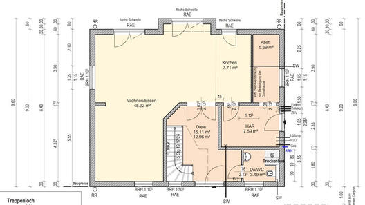 Der Boden im EG wurde isoliert, die letzten beiden Wände im EG von den Maurern gesetzt und kleine Reparaturen in den Wänden durchgeführt. Zudem fand der Vorort-Termin mit dem Elektriker und dem Sanitärtechniker statt, bei dem jedes Detail einzeln besprochen und geplant wurde. Das war wirklich spannend und fast komplexer als die Grundrissplanung.