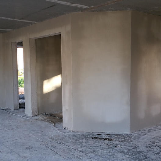 Die letzten kleinen Änderungen wurden vorgenommen und im Anschluss an die Elektroarbeiten begannen die Innenputzer mit ihrer Arbeit. Die Wände im EG sind super glatt geworden.