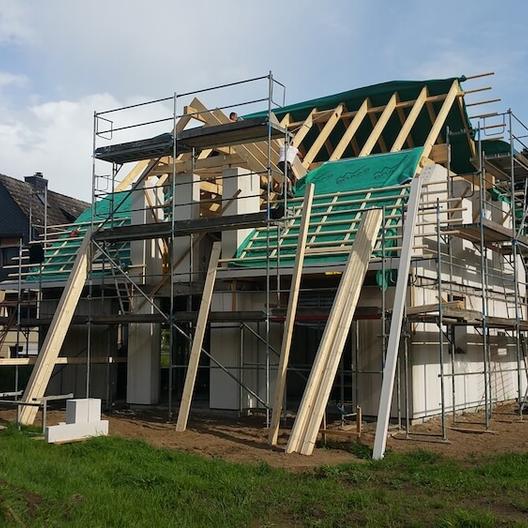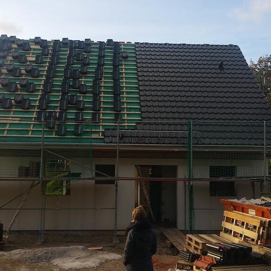 Nach dem Richtfest wurde das Dach abgedeckt, vernagelt und verkleidet. Wir erfuhren aber auch, dass sich das Dachdecken aufgrund von Lieferengpässen verzögern würde und somit auch der Innenausbau.