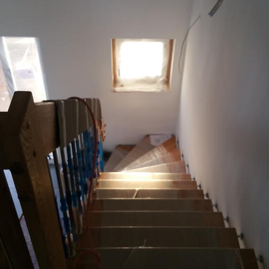 Parallel wurde es Außen spannend: Unser Farbputz wurde aufgetragen, das Haus erhielt endlich seinen abschließenden Look und das Gerüst wurde nun abgebaut. Zudem bemusterten wir bei der Derstappen GmbH unsere Treppe.
