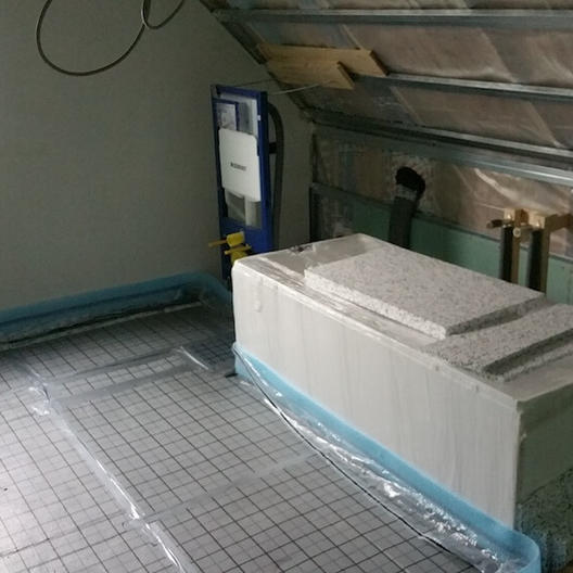 Aufgrund von zeitlichen Verzögerungen bei dem Sanitärunternehmen musste der Bau ruhen.