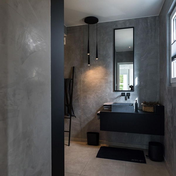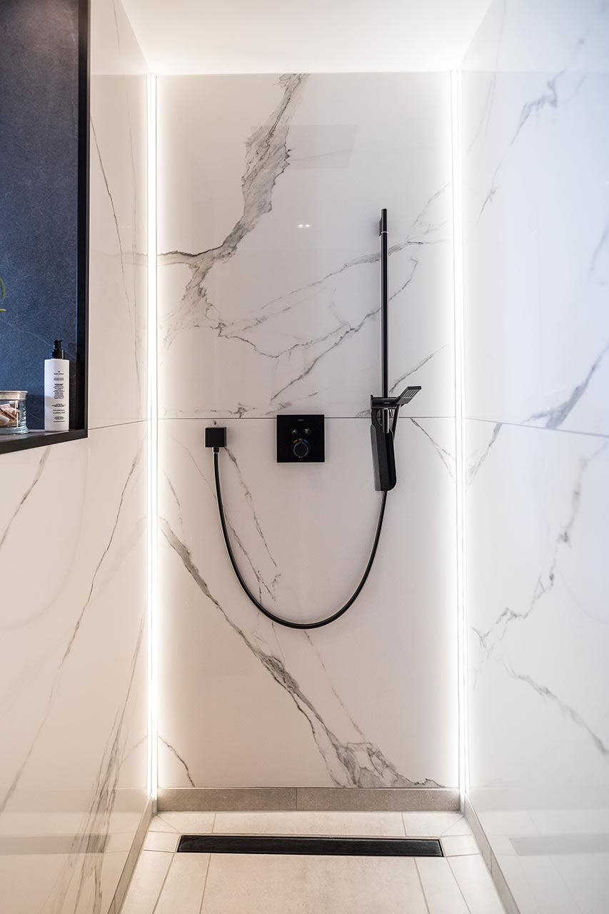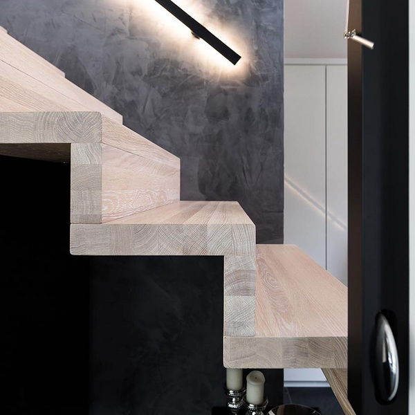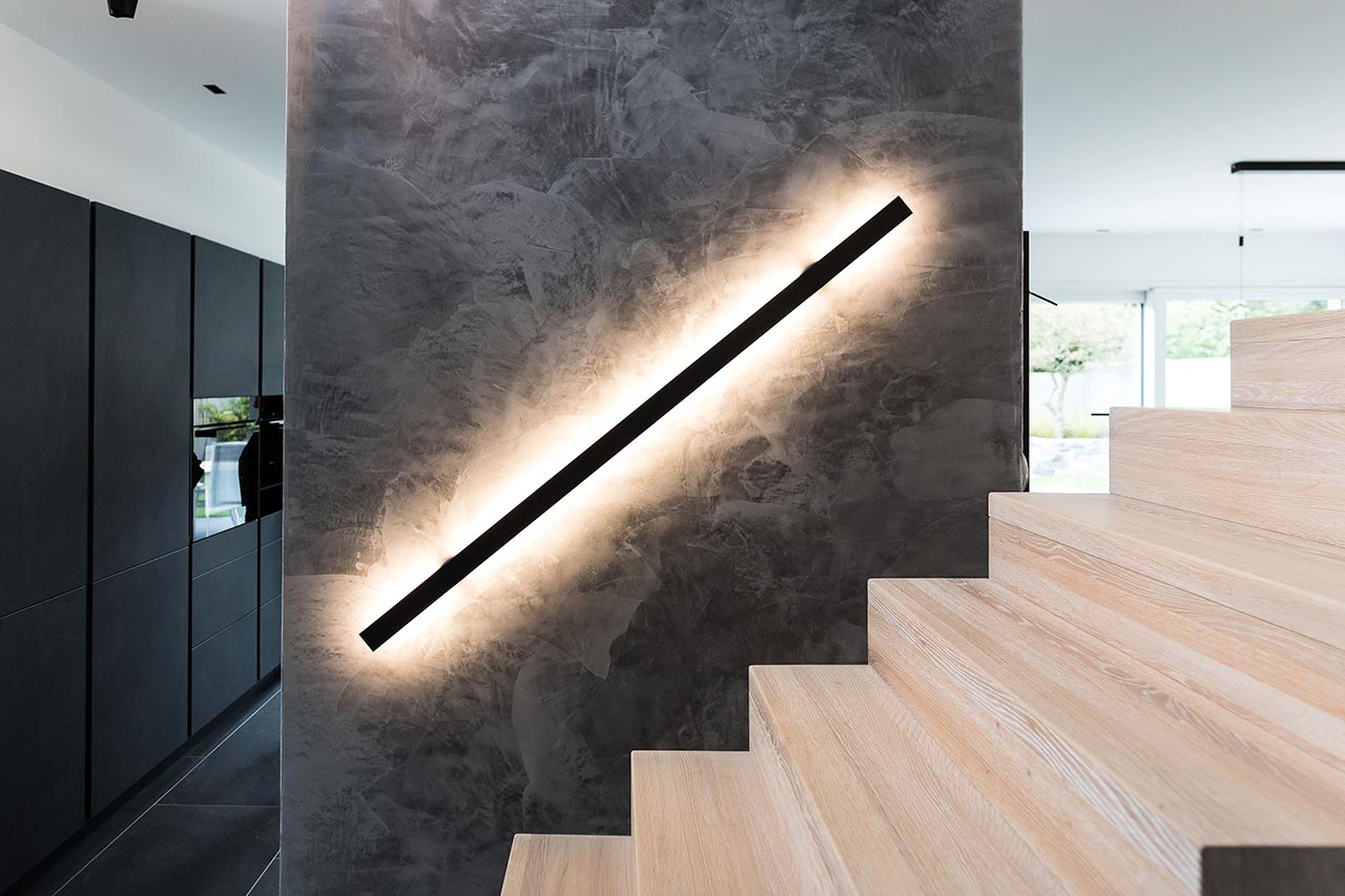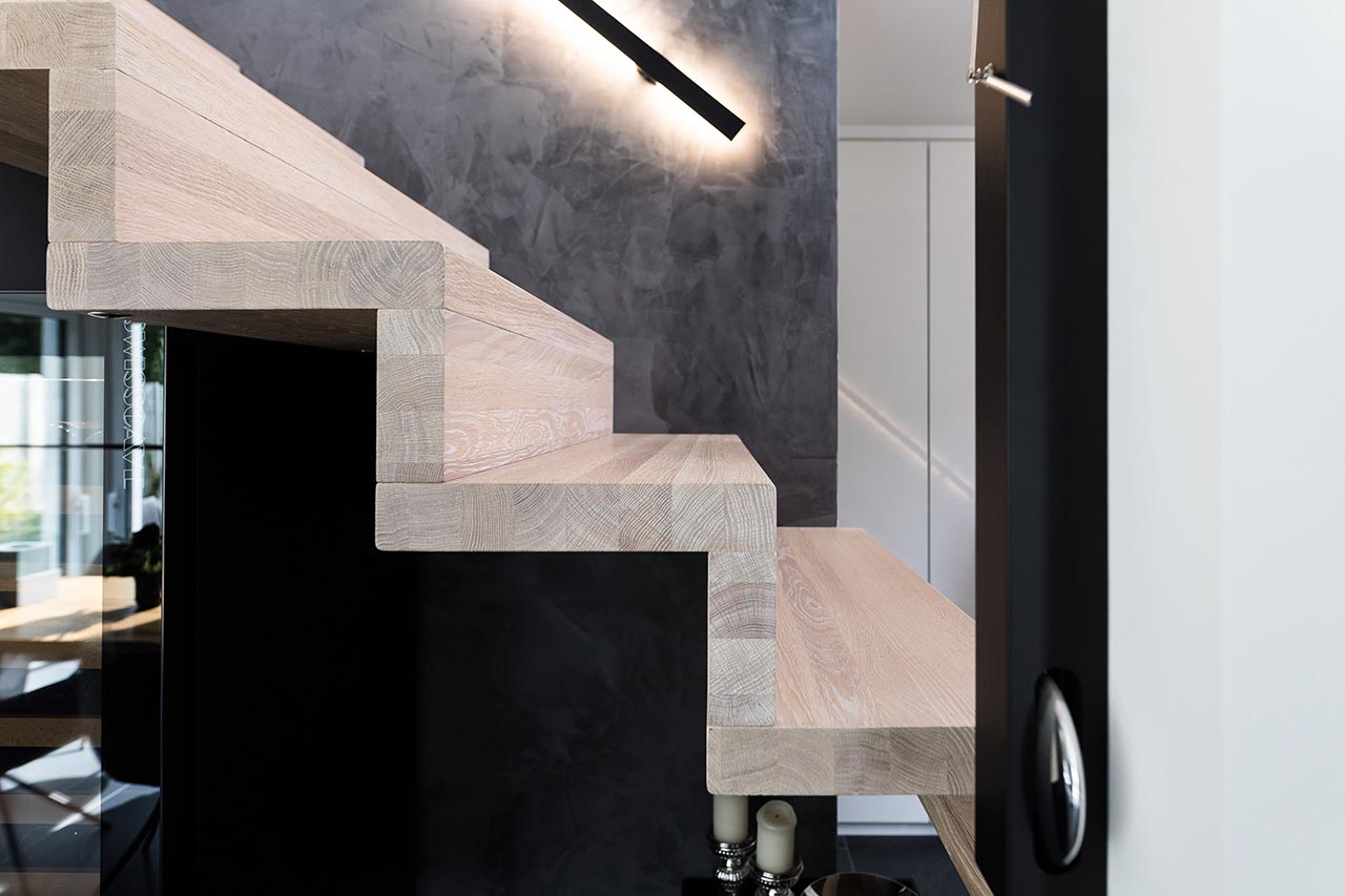 Sie haben eine sehr klare Farb- und Formensprache für Ihr Haus gewählt. Im gesamten Haus ist alles sehr stimmig und folgt einer einheitlichen Linie. Das sieht man auf den ersten Blick zum Beispiel in der Küche, bei der Treppe und in Ihrem Bad. Aber die vielen, kleinen Details machen es im Ganzen erst rund. Was hat Sie zur Auswahl bestimmter Elemente inspiriert?