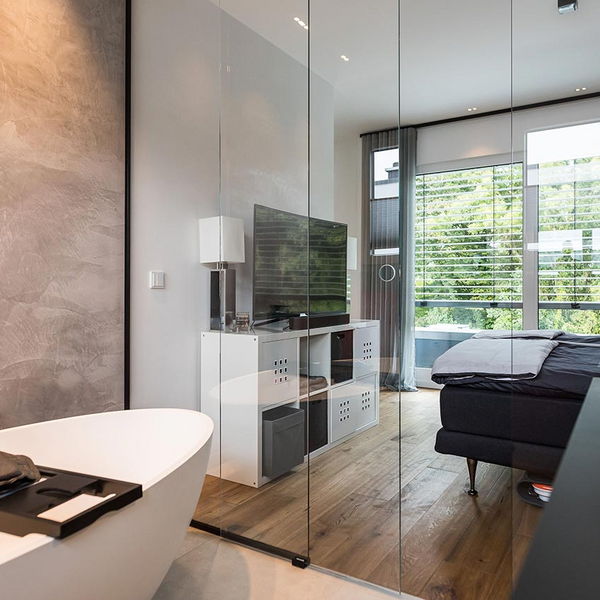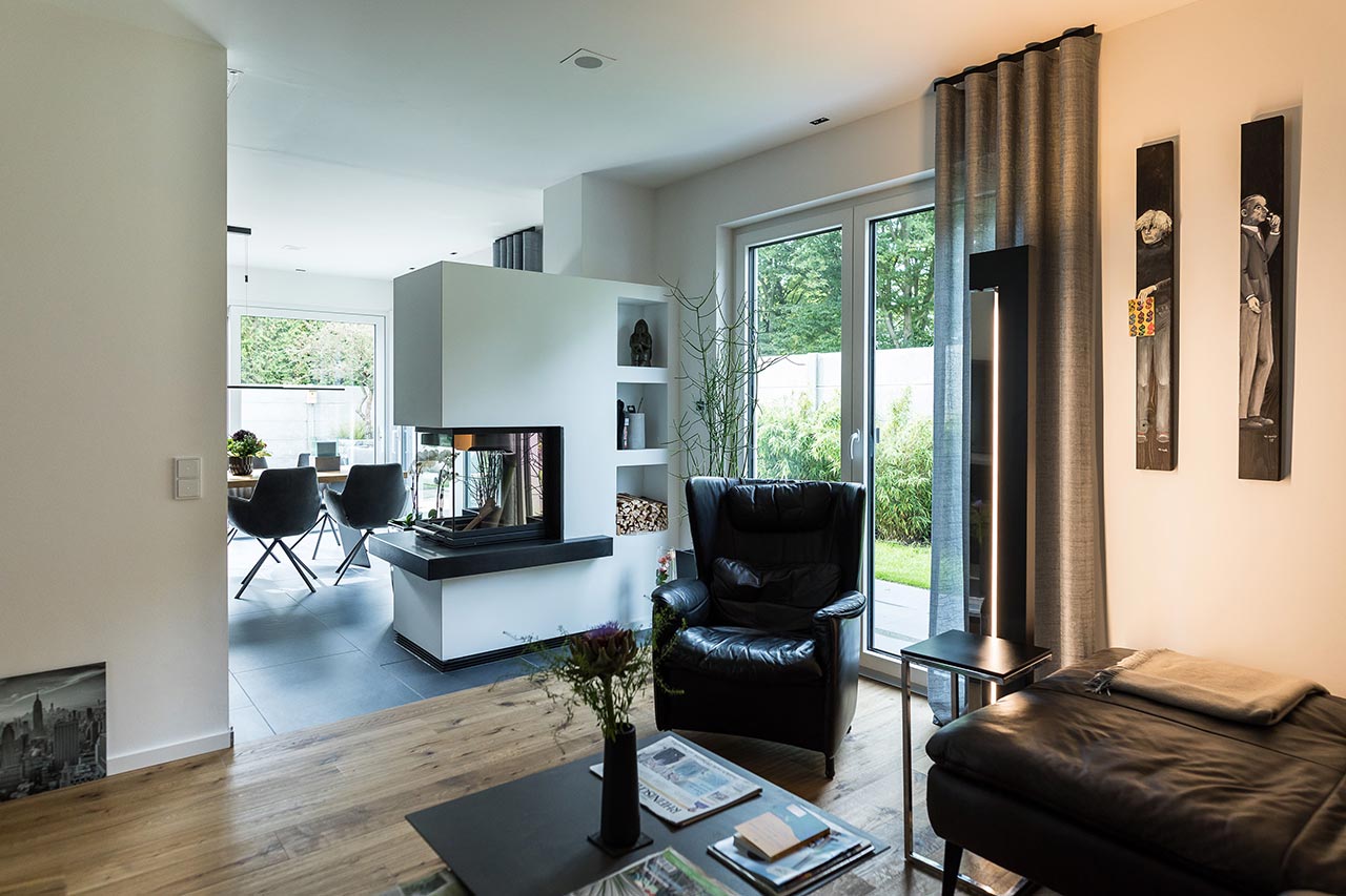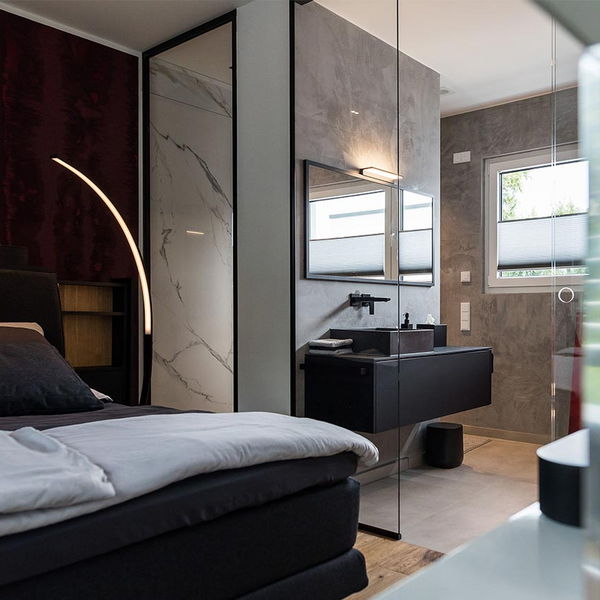 "Positiv waren am Anfang auf jeden Fall die ersten Gespräche mit Frau Emde und Herrn Wisniewski aber auch die gesamte Haus-Planung und das offene Treppenhaus. Generell wurde vor der Bauphase und während des Hausbaus immer auf unsere Wünsche eingegangen. Zum Beispiel im Obergeschoss. Das Badezimmer und das Schlafzimmer sind nur durch eine Glaswand getrennt. Absolut kein Standard!