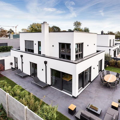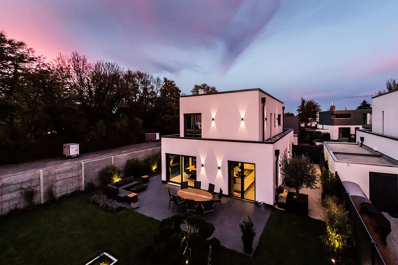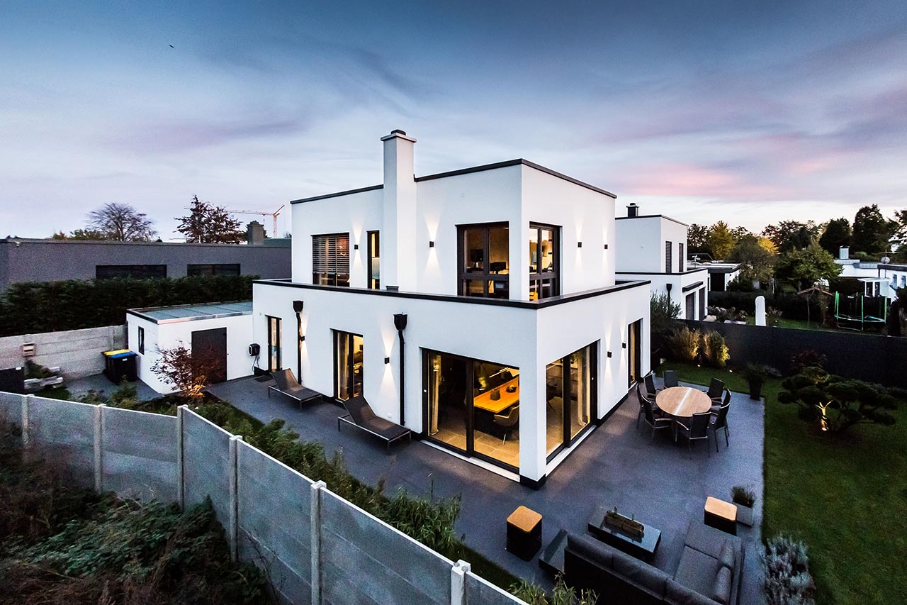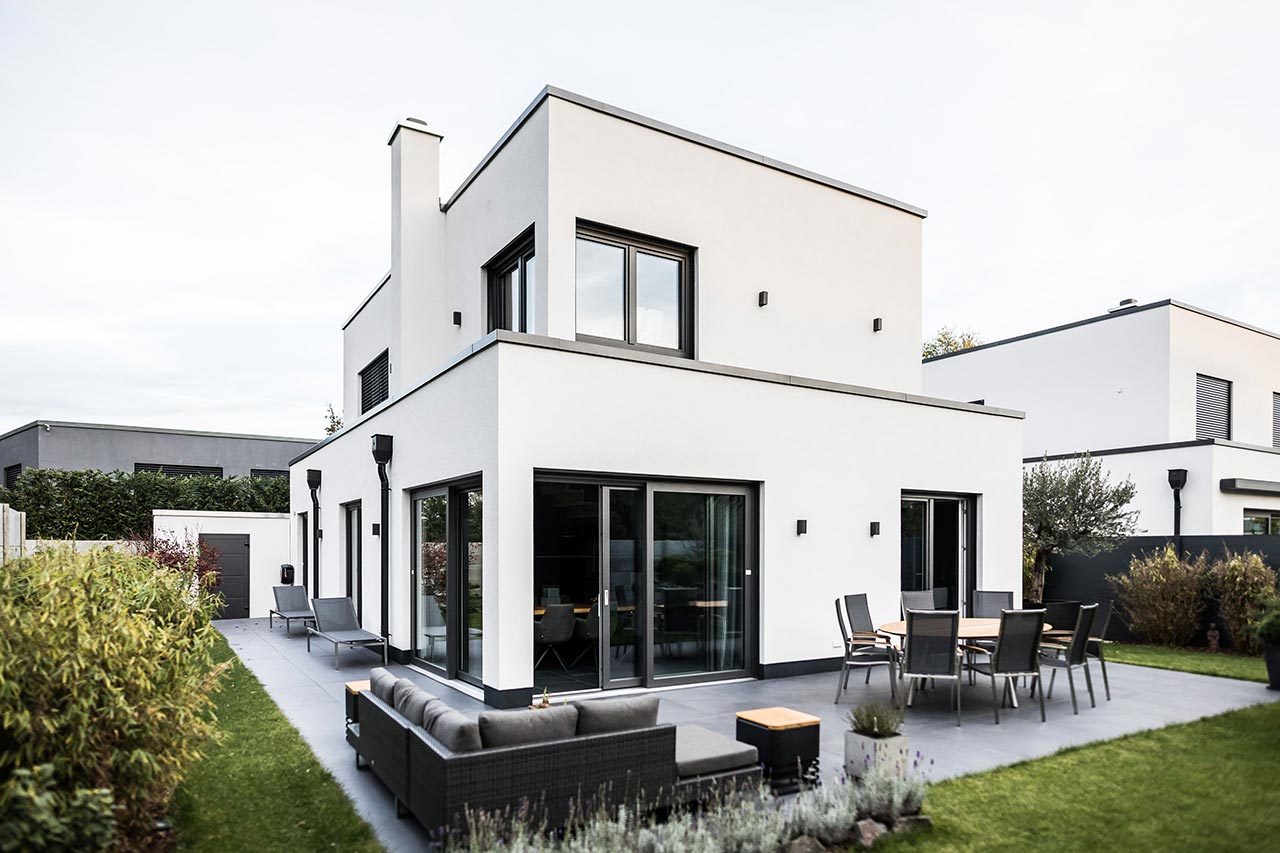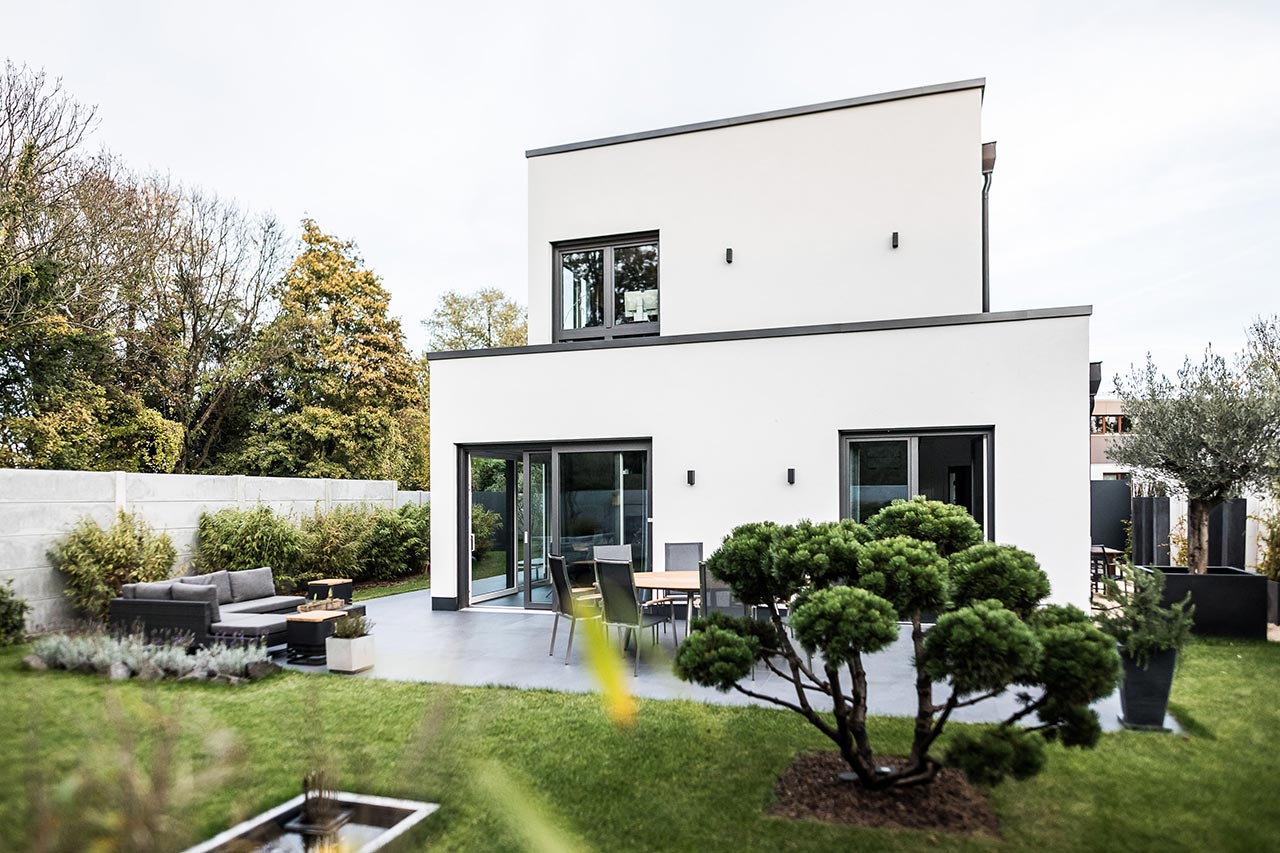 "… Genau. Das war im Bauhausstil, also ein Staffelhaus. Der moderne Stil hat uns gefallen und hier in der Gegend war es so, dass nur Staffelhäuser gebaut wurden, von daher passte das sehr gut. Es war also dieser moderne Stil, der uns überzeugt hat."