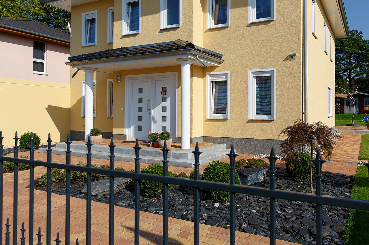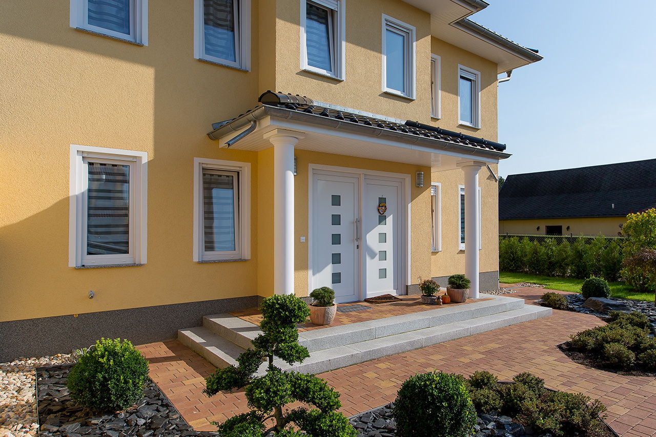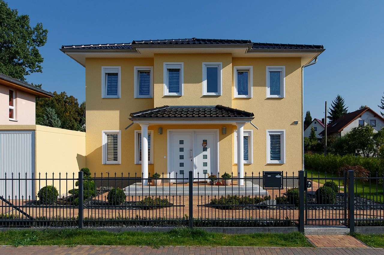 Impressionen einer Stadtvilla mit Erker und gelbem Putz