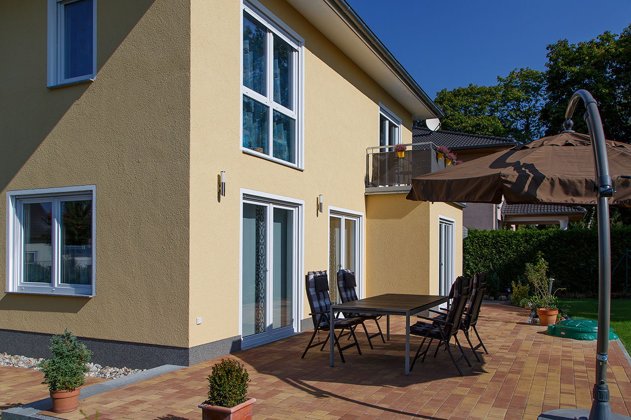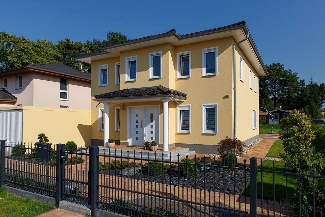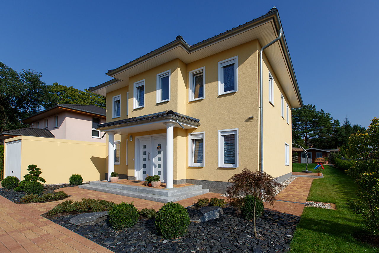 Impressionen einer Stadtvilla mit Erker und gelbem Putz