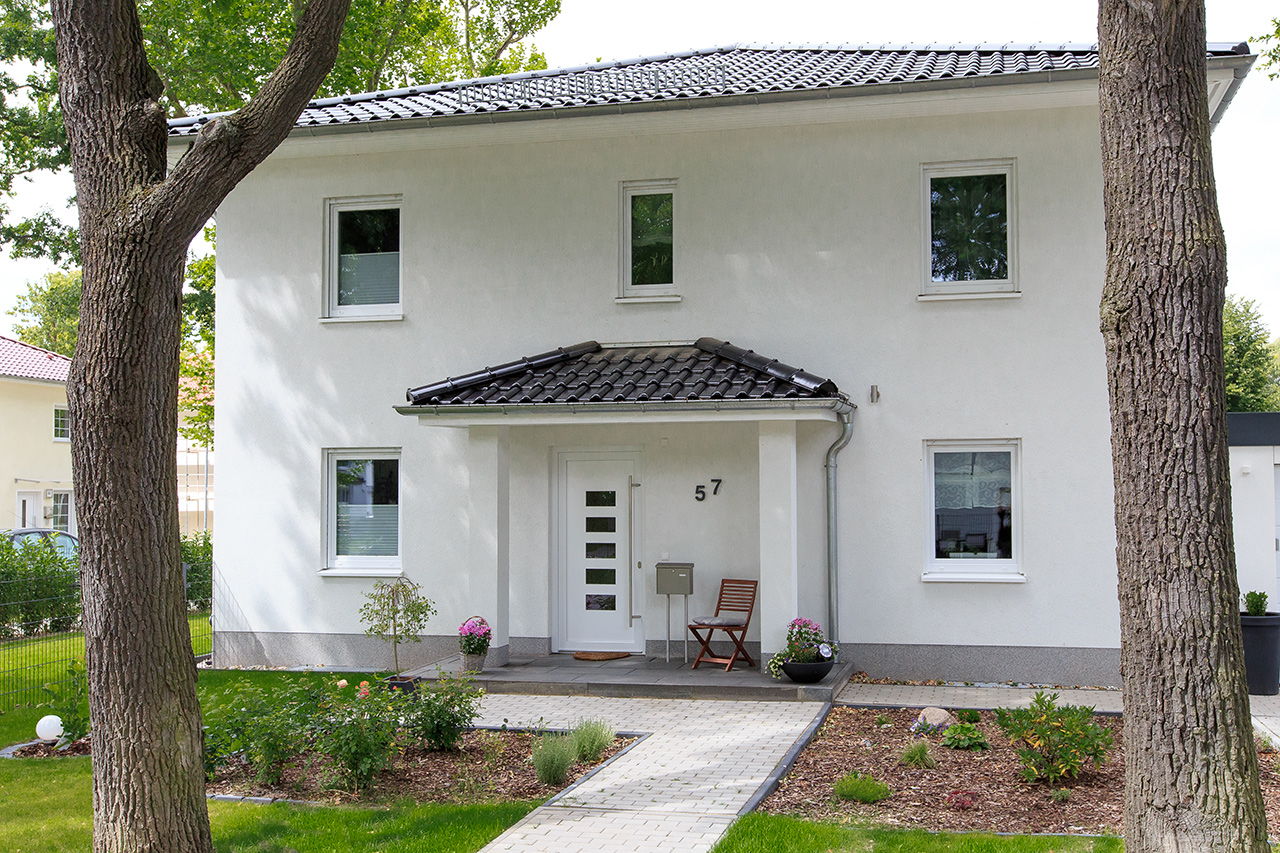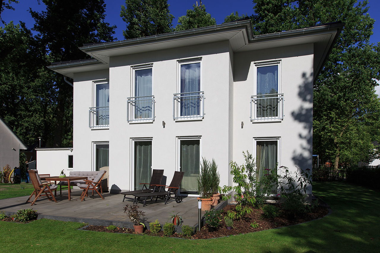 Impressionen einer Stadtvilla mit Erker und weißem Putz