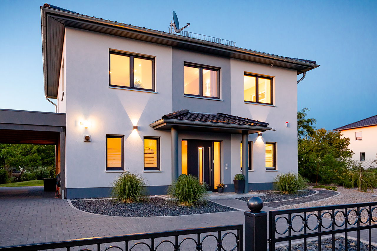 Impressionen Stadtvilla mit zweifarbigen Putz