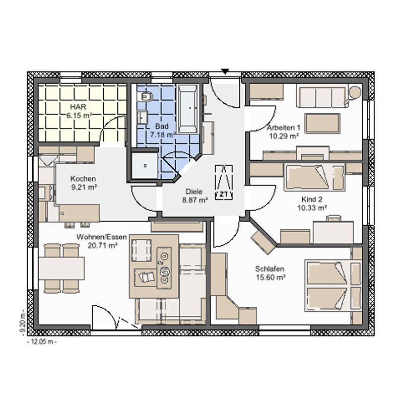 Außenmaße: 9,20 x 12,05 m