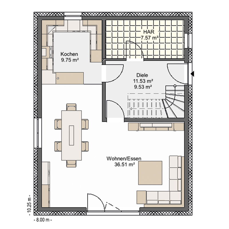 | Außenmaße: | 8,00 x 10,25 m |