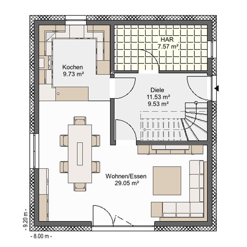 | Außenmaße: | 8,00 x 9,20 m |