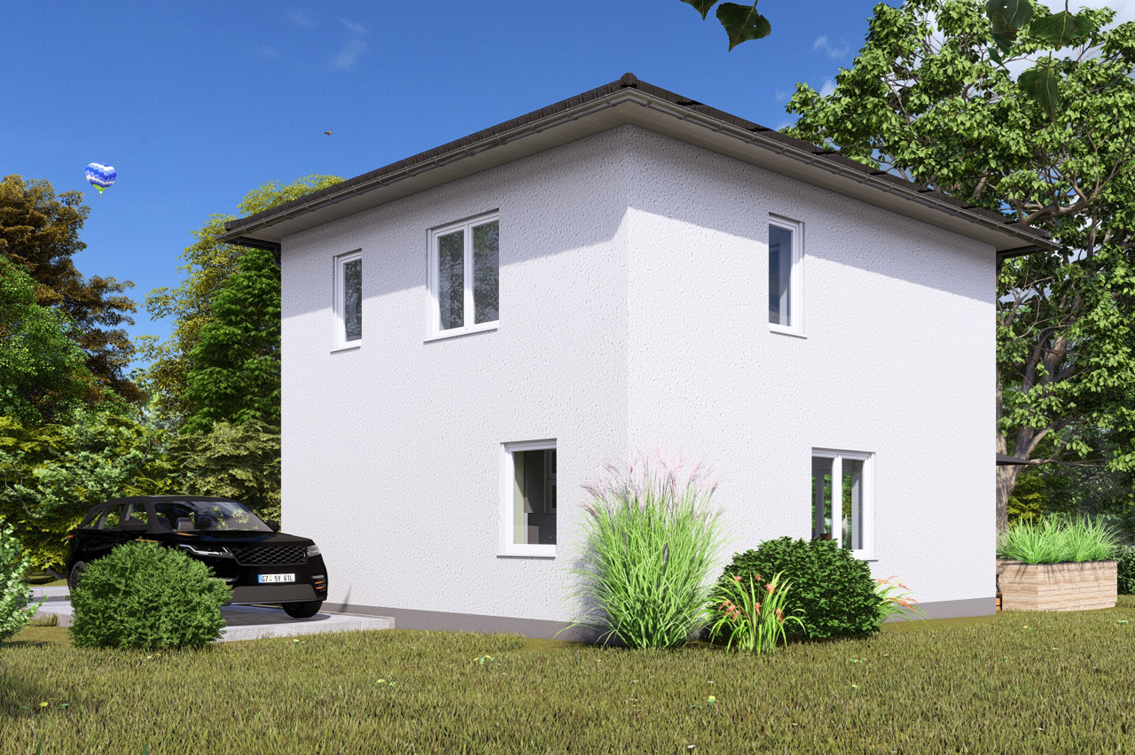Unser Raumwunder aus der Serie „Familienfreundlicher Neubau“ mit seinen zwei Vollgeschossen präsentiert sich als das perfekte Zuhause – mit genügend Platz für ein erfülltes Familienleben mit kleinen oder großen Kindern. Die großzügigen, geschosshohen Wände bieten endlose Möglichkeiten zur individuellen Gestaltung und schaffen ein offenes und luftiges Ambiente. Das Stadthaus 6-95 ist wie eine leere Leinwand: bereit, an die Bedürfnisse und Vorlieben seiner Baufamilie angepasst zu werden. Die offene Wohnküche integriert den Koch-, Ess- und Wohnbereich nahtlos miteinander und schafft einen zentralen Treffpunkt für die Familie und Gäste. Eine großzügige Terrassentür mit drei Flügeln öffnet den Weg in den Garten und schafft eine harmonische Verbindung zwischen Innen- und Außenbereich. Und das Schlafzimmer mit Abstellraum bietet praktischen Stauraum, welcher als begehbarer Kleiderschrank, Schuh- oder Allzweckraum genutzt werden kann. Dieses Stadthaus ist ein einladendes und flexibles Zuhause, das den Bedürfnissen Ihrer Familie gewiss mehr als gerecht wird. Hier finden Sie Platz zum Entfalten, für gemütliches Beisammensein und praktische Lösungen, um den Alltag zu organisieren.