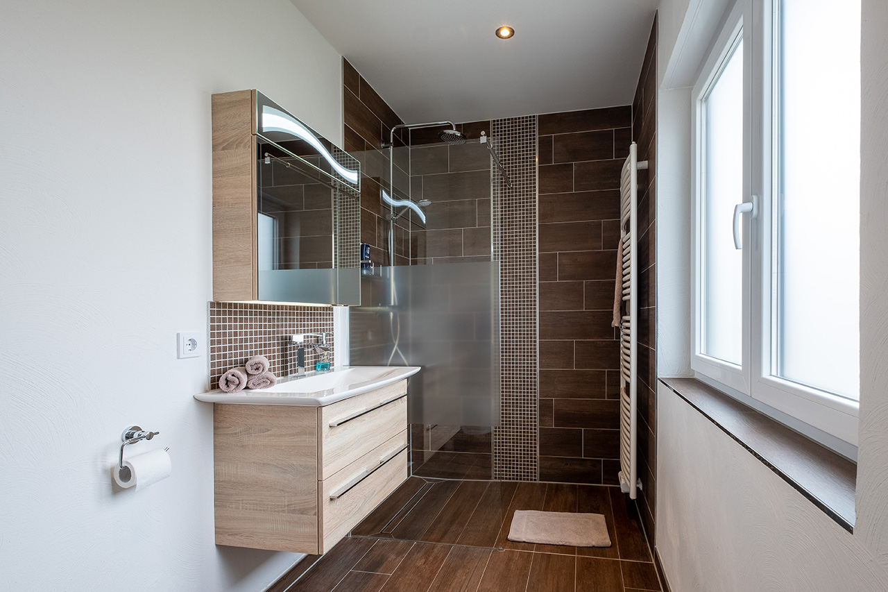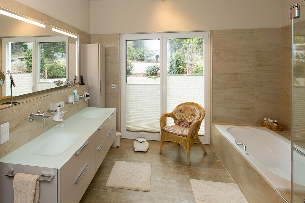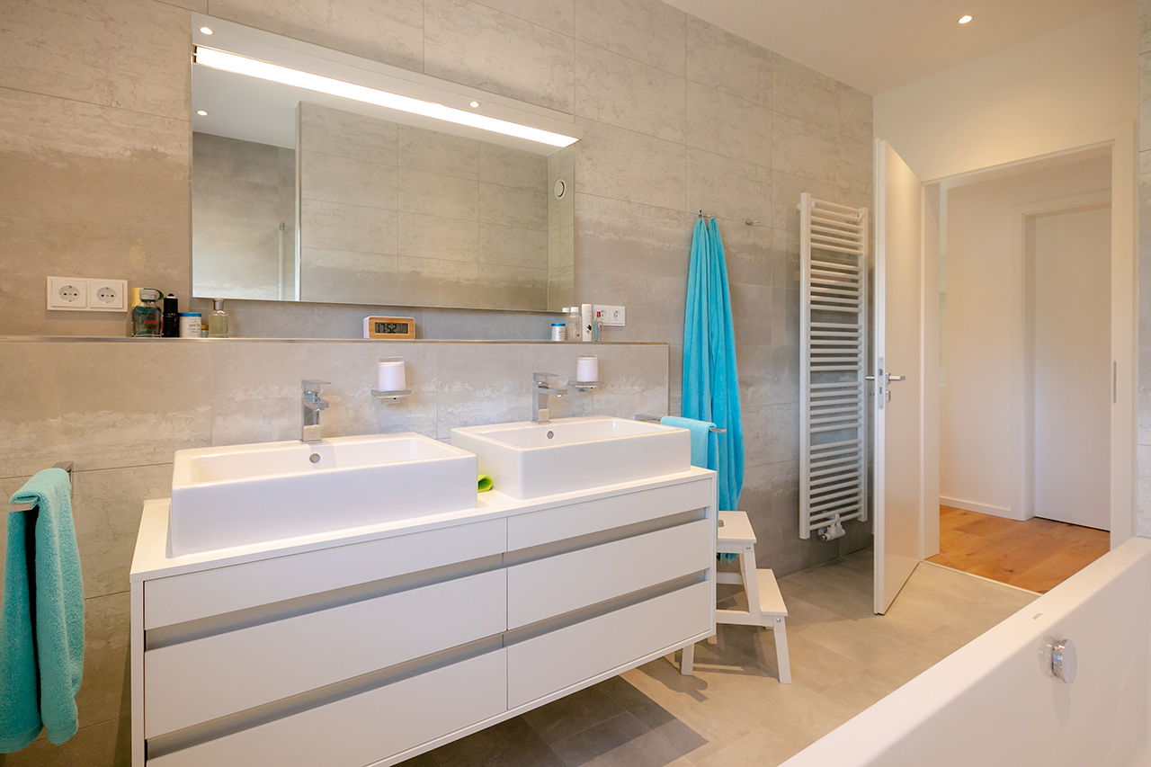 Fliesen im Bad, im Gäste WC, der Diele, dem Hauswirtschaftsraum und der Küche sind bei Elbe-Haus® immer inklusive. Natürlich inklusive Sockelfliesen. Und das in einem Format von bis zu 60 x 60 cm und bis zu einem Wert von 40,- € / m2.