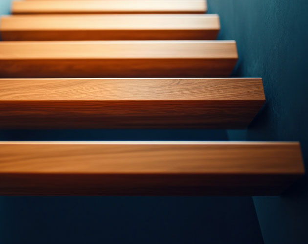 Treppen von Treppenmeister werden ausschließlich aus hochwertigem Massivholz hergestellt. Auch das Material für die Ausstattung der Treppen und die Beschläge sind von höchster Qualität. Hochwertige Naturkautschuk-Elastomere ermöglichen weiches, elastisches Gehen statt harter Tritte.