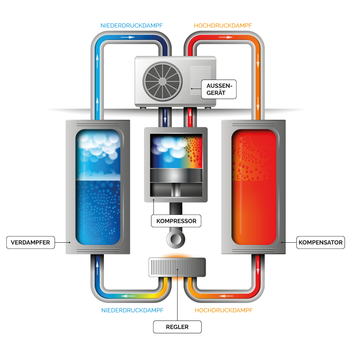 - Kompakt: Heizen, Warmwasser, Lüften und Kühlen