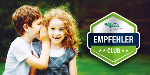 Der Elbe-Haus® EmpfehlerClub wird ins Leben gerufen. Die Mitgliedschaft im EmpfehlerClub ist ohne jede Verpflichtung oder Kosten. Wer Elbe-Haus® weiterempfiehlt, profitiert als Mitglied von attraktiven Geld-Prämien bis zu 2.000,- Euro für jede Empfehlung und weiteren exklusiven Vorteilen.